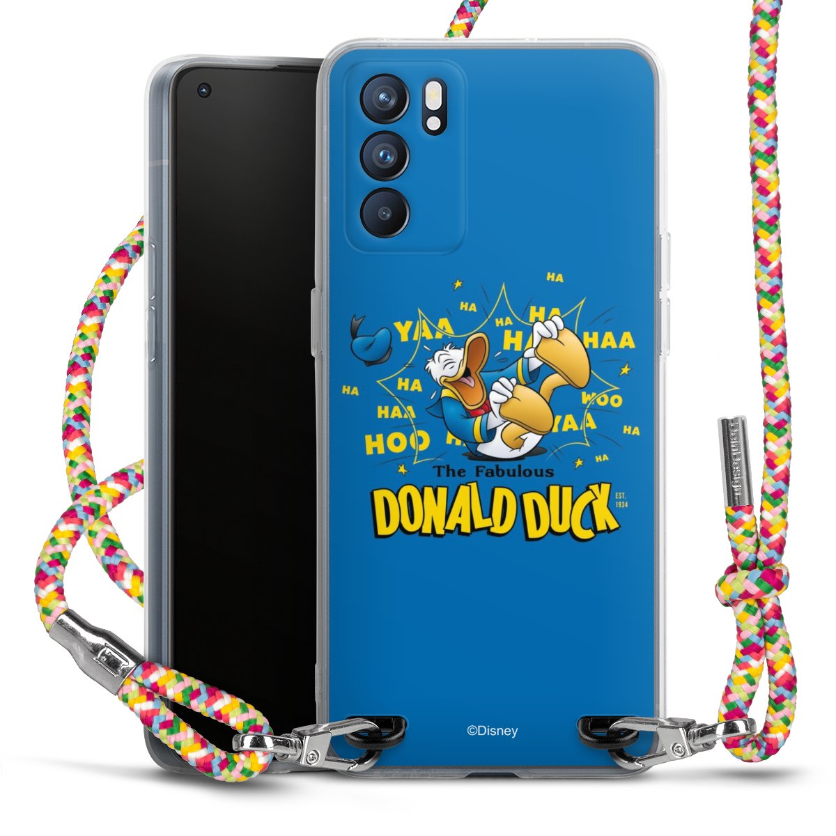 The flexible case is made from a highquality TPU material (thermoplastic Polyurethan). Thanks to its longlasting and break resistant characterisitcs, the case is flexible yet consistent in form and has a great grip and feel. The textile strap made from Polyester gives a chic yet casual accent allowing you to carry your phone like a bag or necklace - a practical gadget perfect for your next adventure. The textile strap is about 1.70 meters long and the length can easily be adjusted through the knots. Our Carry Case is available in Colourful, Mint-Camouflage, Very-Berry, Sahara-Sand and Sparkling-Neon. The ends of the textile strap are covered with metallic end caps to protect them against fraying.