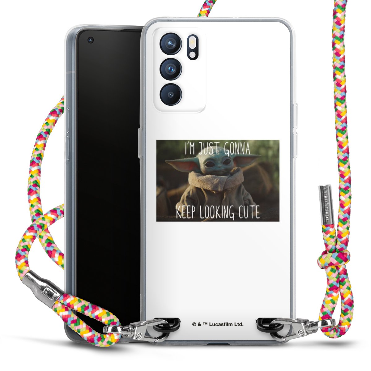 The flexible case is made from a highquality TPU material (thermoplastic Polyurethan). Thanks to its longlasting and break resistant characterisitcs, the case is flexible yet consistent in form and has a great grip and feel. The textile strap made from Polyester gives a chic yet casual accent allowing you to carry your phone like a bag or necklace - a practical gadget perfect for your next adventure. The textile strap is about 1.70 meters long and the length can easily be adjusted through the knots. Our Carry Case is available in Colourful, Mint-Camouflage, Very-Berry, Sahara-Sand and Sparkling-Neon. The ends of the textile strap are covered with metallic end caps to protect them against fraying.