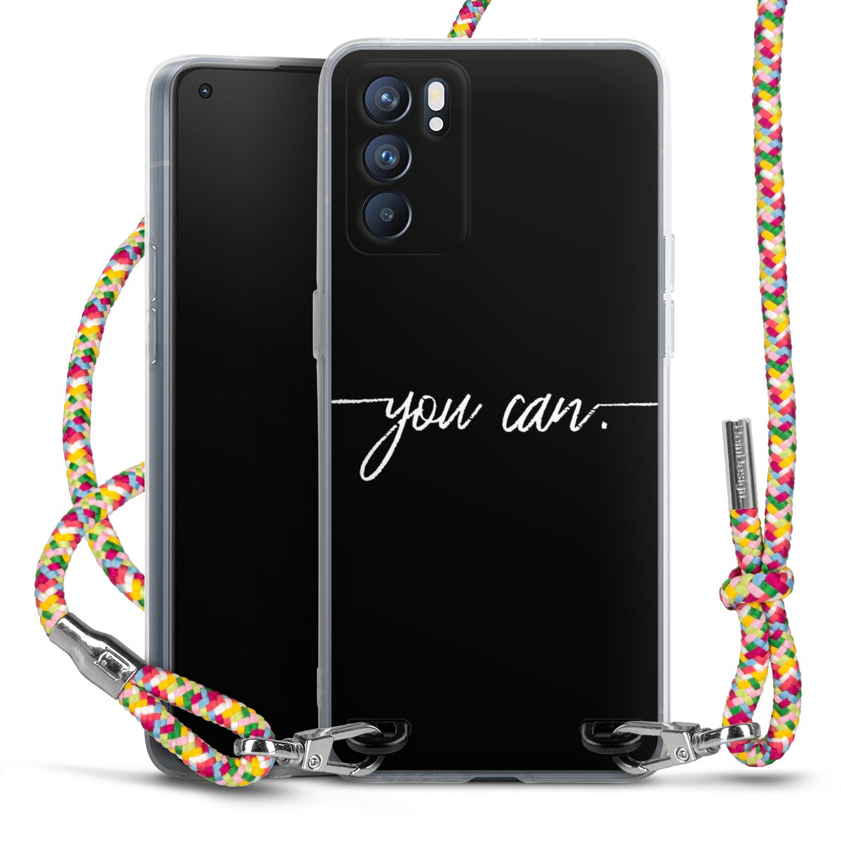 The flexible case is made from a highquality TPU material (thermoplastic Polyurethan). Thanks to its longlasting and break resistant characterisitcs, the case is flexible yet consistent in form and has a great grip and feel. The textile strap made from Polyester gives a chic yet casual accent allowing you to carry your phone like a bag or necklace - a practical gadget perfect for your next adventure. The textile strap is about 1.70 meters long and the length can easily be adjusted through the knots. Our Carry Case is available in Colourful, Mint-Camouflage, Very-Berry, Sahara-Sand and Sparkling-Neon. The ends of the textile strap are covered with metallic end caps to protect them against fraying.
