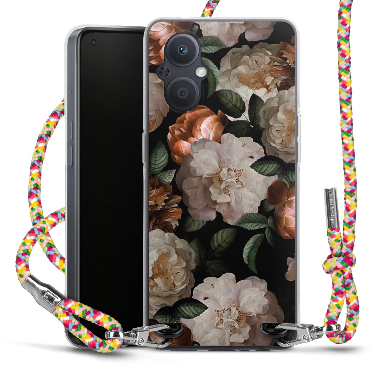 The flexible case is made from a highquality TPU material (thermoplastic Polyurethan). Thanks to its longlasting and break resistant characterisitcs, the case is flexible yet consistent in form and has a great grip and feel. The textile strap made from Polyester gives a chic yet casual accent allowing you to carry your phone like a bag or necklace - a practical gadget perfect for your next adventure. The textile strap is about 1.70 meters long and the length can easily be adjusted through the knots. Our Carry Case is available in Colourful, Mint-Camouflage, Very-Berry, Sahara-Sand and Sparkling-Neon. The ends of the textile strap are covered with metallic end caps to protect them against fraying.