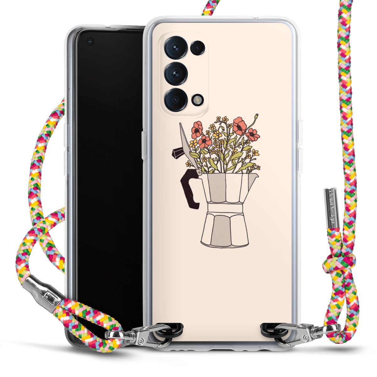 The flexible case is made from a highquality TPU material (thermoplastic Polyurethan). Thanks to its longlasting and break resistant characterisitcs, the case is flexible yet consistent in form and has a great grip and feel. The textile strap made from Polyester gives a chic yet casual accent allowing you to carry your phone like a bag or necklace - a practical gadget perfect for your next adventure. The textile strap is about 1.70 meters long and the length can easily be adjusted through the knots. Our Carry Case is available in Colourful, Mint-Camouflage, Very-Berry, Sahara-Sand and Sparkling-Neon. The ends of the textile strap are covered with metallic end caps to protect them against fraying.