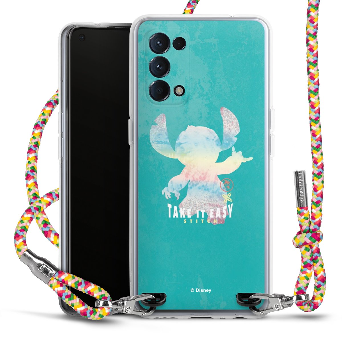 The flexible case is made from a highquality TPU material (thermoplastic Polyurethan). Thanks to its longlasting and break resistant characterisitcs, the case is flexible yet consistent in form and has a great grip and feel. The textile strap made from Polyester gives a chic yet casual accent allowing you to carry your phone like a bag or necklace - a practical gadget perfect for your next adventure. The textile strap is about 1.70 meters long and the length can easily be adjusted through the knots. Our Carry Case is available in Colourful, Mint-Camouflage, Very-Berry, Sahara-Sand and Sparkling-Neon. The ends of the textile strap are covered with metallic end caps to protect them against fraying.