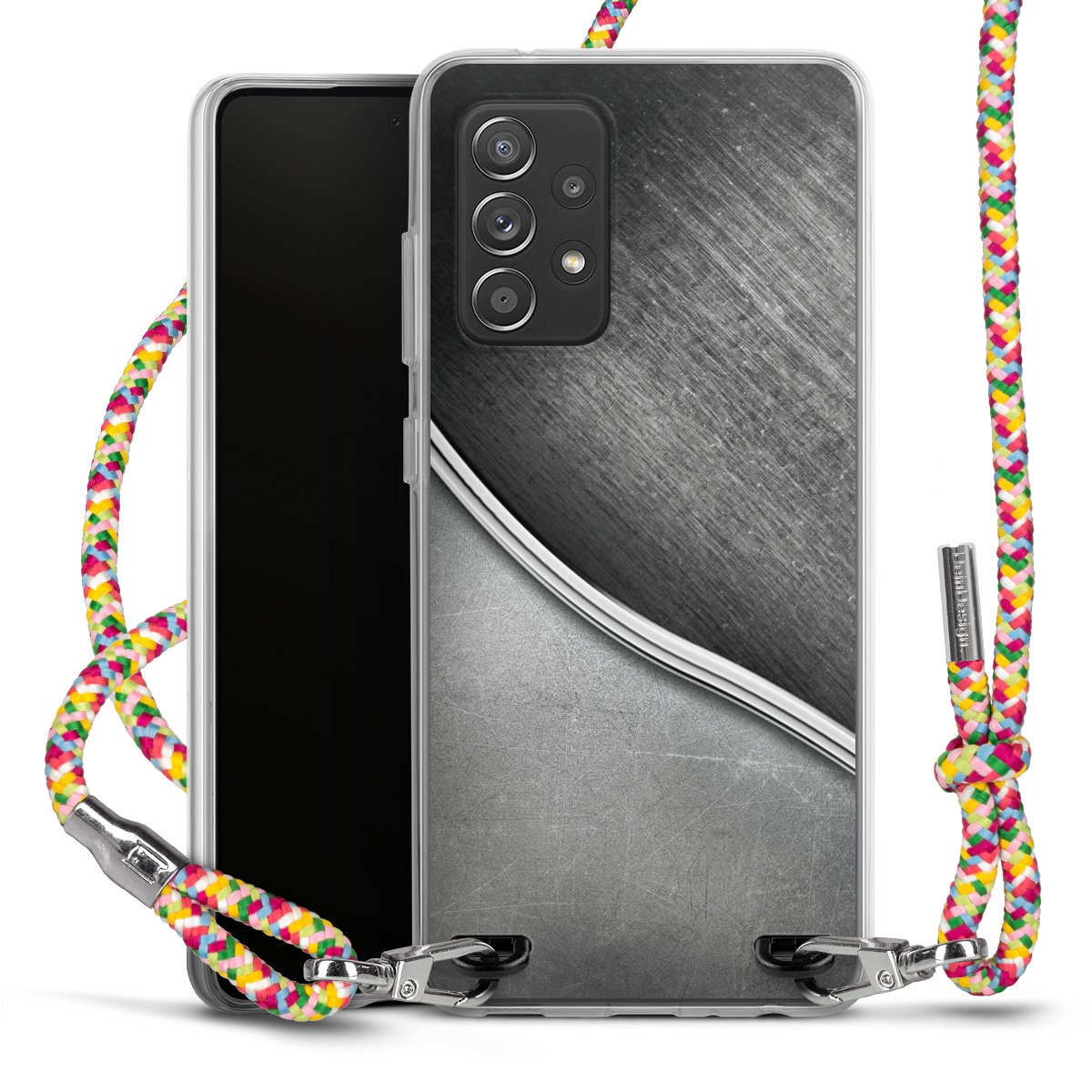 The flexible case is made from a highquality TPU material (thermoplastic Polyurethan). Thanks to its longlasting and break resistant characterisitcs, the case is flexible yet consistent in form and has a great grip and feel. The textile strap made from Polyester gives a chic yet casual accent allowing you to carry your phone like a bag or necklace - a practical gadget perfect for your next adventure. The textile strap is about 1.70 meters long and the length can easily be adjusted through the knots. Our Carry Case is available in Colourful, Mint-Camouflage, Very-Berry, Sahara-Sand and Sparkling-Neon. The ends of the textile strap are covered with metallic end caps to protect them against fraying.
