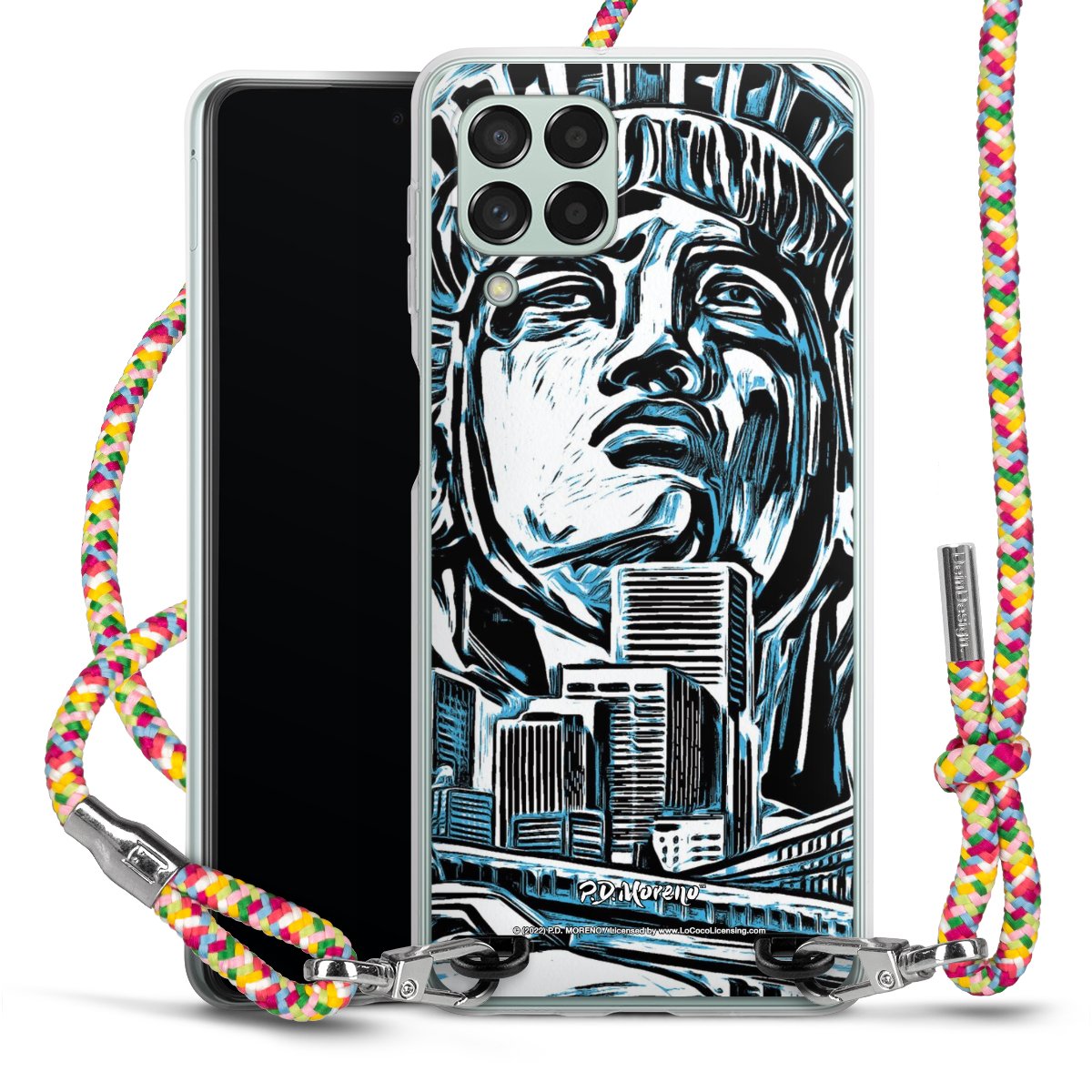 The flexible case is made from a highquality TPU material (thermoplastic Polyurethan). Thanks to its longlasting and break resistant characterisitcs, the case is flexible yet consistent in form and has a great grip and feel. The textile strap made from Polyester gives a chic yet casual accent allowing you to carry your phone like a bag or necklace - a practical gadget perfect for your next adventure. The textile strap is about 1.70 meters long and the length can easily be adjusted through the knots. Our Carry Case is available in Colourful, Mint-Camouflage, Very-Berry, Sahara-Sand and Sparkling-Neon. The ends of the textile strap are covered with metallic end caps to protect them against fraying.