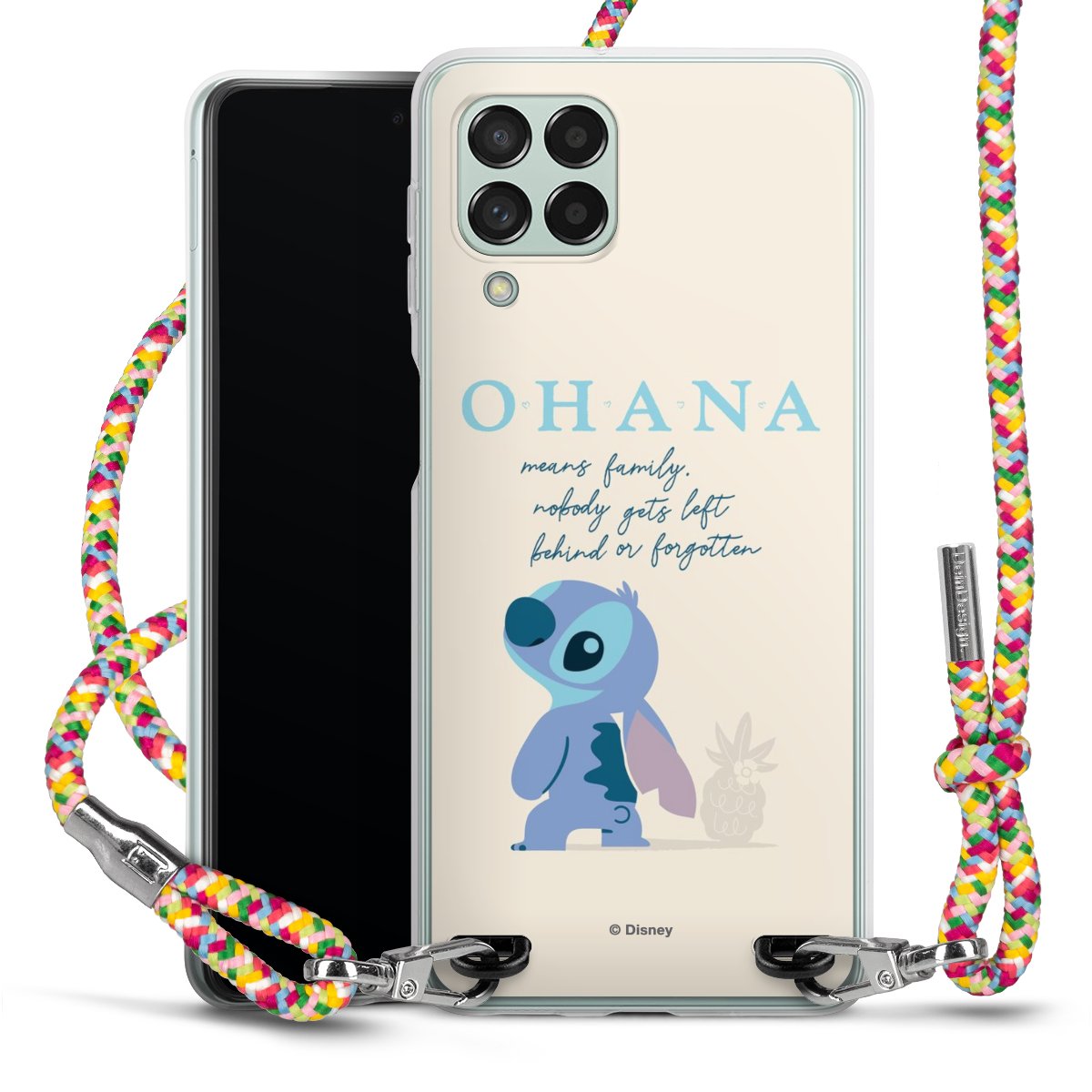 The flexible case is made from a highquality TPU material (thermoplastic Polyurethan). Thanks to its longlasting and break resistant characterisitcs, the case is flexible yet consistent in form and has a great grip and feel. The textile strap made from Polyester gives a chic yet casual accent allowing you to carry your phone like a bag or necklace - a practical gadget perfect for your next adventure. The textile strap is about 1.70 meters long and the length can easily be adjusted through the knots. Our Carry Case is available in Colourful, Mint-Camouflage, Very-Berry, Sahara-Sand and Sparkling-Neon. The ends of the textile strap are covered with metallic end caps to protect them against fraying.