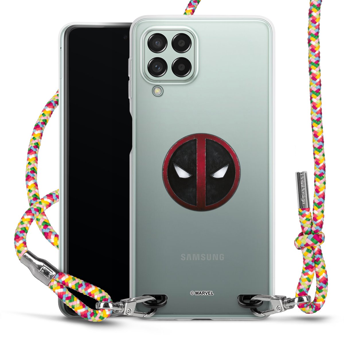 The flexible case is made from a highquality TPU material (thermoplastic Polyurethan). Thanks to its longlasting and break resistant characterisitcs, the case is flexible yet consistent in form and has a great grip and feel. The textile strap made from Polyester gives a chic yet casual accent allowing you to carry your phone like a bag or necklace - a practical gadget perfect for your next adventure. The textile strap is about 1.70 meters long and the length can easily be adjusted through the knots. Our Carry Case is available in Colourful, Mint-Camouflage, Very-Berry, Sahara-Sand and Sparkling-Neon. The ends of the textile strap are covered with metallic end caps to protect them against fraying.