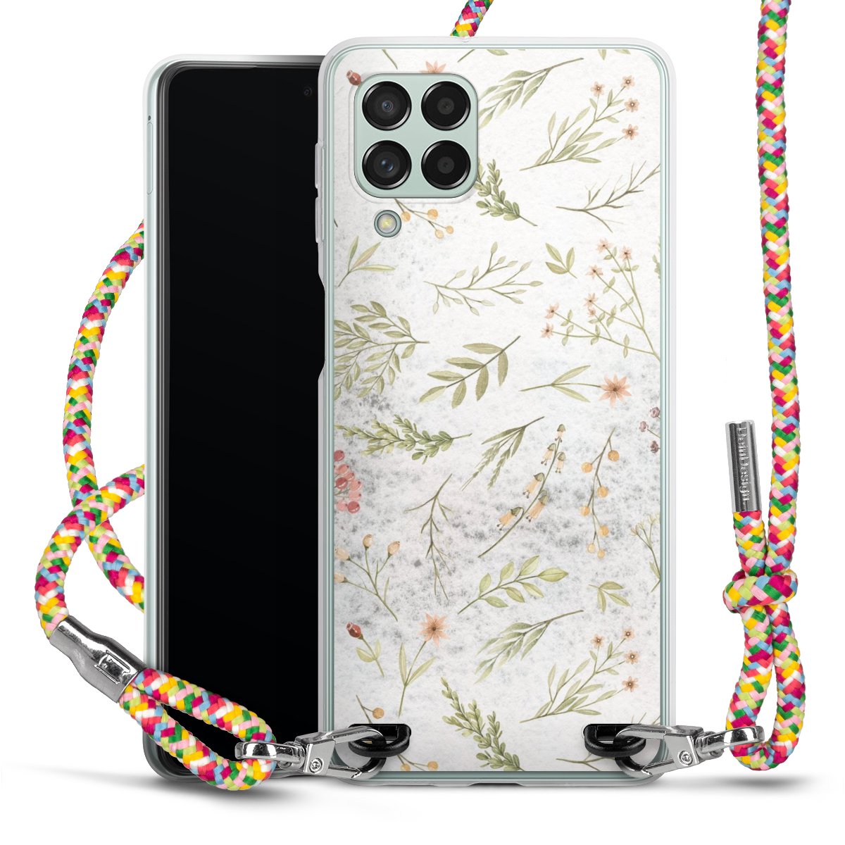The flexible case is made from a highquality TPU material (thermoplastic Polyurethan). Thanks to its longlasting and break resistant characterisitcs, the case is flexible yet consistent in form and has a great grip and feel. The textile strap made from Polyester gives a chic yet casual accent allowing you to carry your phone like a bag or necklace - a practical gadget perfect for your next adventure. The textile strap is about 1.70 meters long and the length can easily be adjusted through the knots. Our Carry Case is available in Colourful, Mint-Camouflage, Very-Berry, Sahara-Sand and Sparkling-Neon. The ends of the textile strap are covered with metallic end caps to protect them against fraying.