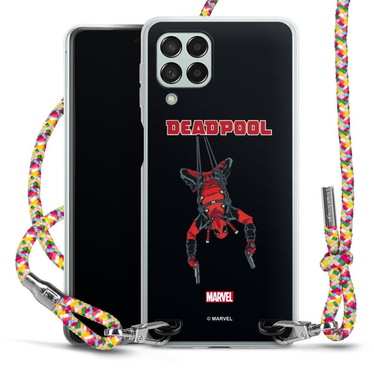 The flexible case is made from a highquality TPU material (thermoplastic Polyurethan). Thanks to its longlasting and break resistant characterisitcs, the case is flexible yet consistent in form and has a great grip and feel. The textile strap made from Polyester gives a chic yet casual accent allowing you to carry your phone like a bag or necklace - a practical gadget perfect for your next adventure. The textile strap is about 1.70 meters long and the length can easily be adjusted through the knots. Our Carry Case is available in Colourful, Mint-Camouflage, Very-Berry, Sahara-Sand and Sparkling-Neon. The ends of the textile strap are covered with metallic end caps to protect them against fraying.