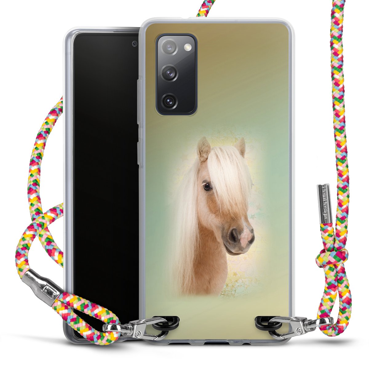 The flexible case is made from a highquality TPU material (thermoplastic Polyurethan). Thanks to its longlasting and break resistant characterisitcs, the case is flexible yet consistent in form and has a great grip and feel. The textile strap made from Polyester gives a chic yet casual accent allowing you to carry your phone like a bag or necklace - a practical gadget perfect for your next adventure. The textile strap is about 1.70 meters long and the length can easily be adjusted through the knots. Our Carry Case is available in Colourful, Mint-Camouflage, Very-Berry, Sahara-Sand and Sparkling-Neon. The ends of the textile strap are covered with metallic end caps to protect them against fraying.