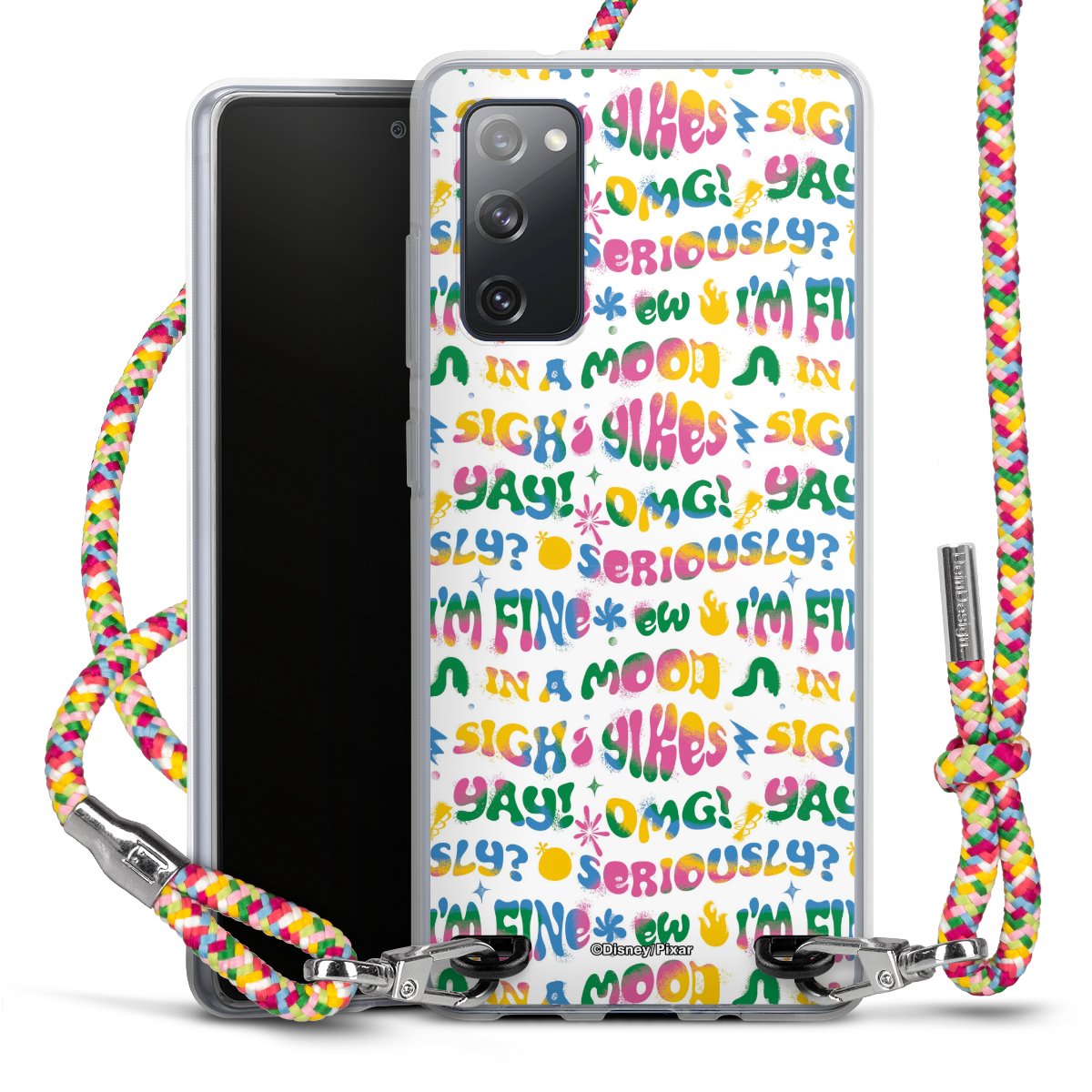 The flexible case is made from a highquality TPU material (thermoplastic Polyurethan). Thanks to its longlasting and break resistant characterisitcs, the case is flexible yet consistent in form and has a great grip and feel. The textile strap made from Polyester gives a chic yet casual accent allowing you to carry your phone like a bag or necklace - a practical gadget perfect for your next adventure. The textile strap is about 1.70 meters long and the length can easily be adjusted through the knots. Our Carry Case is available in Colourful, Mint-Camouflage, Very-Berry, Sahara-Sand and Sparkling-Neon. The ends of the textile strap are covered with metallic end caps to protect them against fraying.
