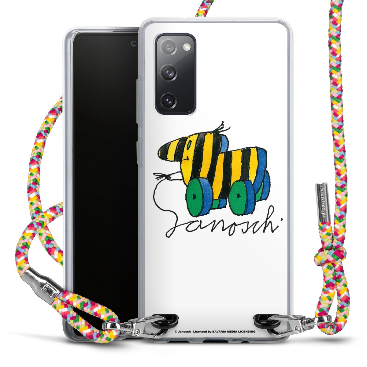 The flexible case is made from a highquality TPU material (thermoplastic Polyurethan). Thanks to its longlasting and break resistant characterisitcs, the case is flexible yet consistent in form and has a great grip and feel. The textile strap made from Polyester gives a chic yet casual accent allowing you to carry your phone like a bag or necklace - a practical gadget perfect for your next adventure. The textile strap is about 1.70 meters long and the length can easily be adjusted through the knots. Our Carry Case is available in Colourful, Mint-Camouflage, Very-Berry, Sahara-Sand and Sparkling-Neon. The ends of the textile strap are covered with metallic end caps to protect them against fraying.