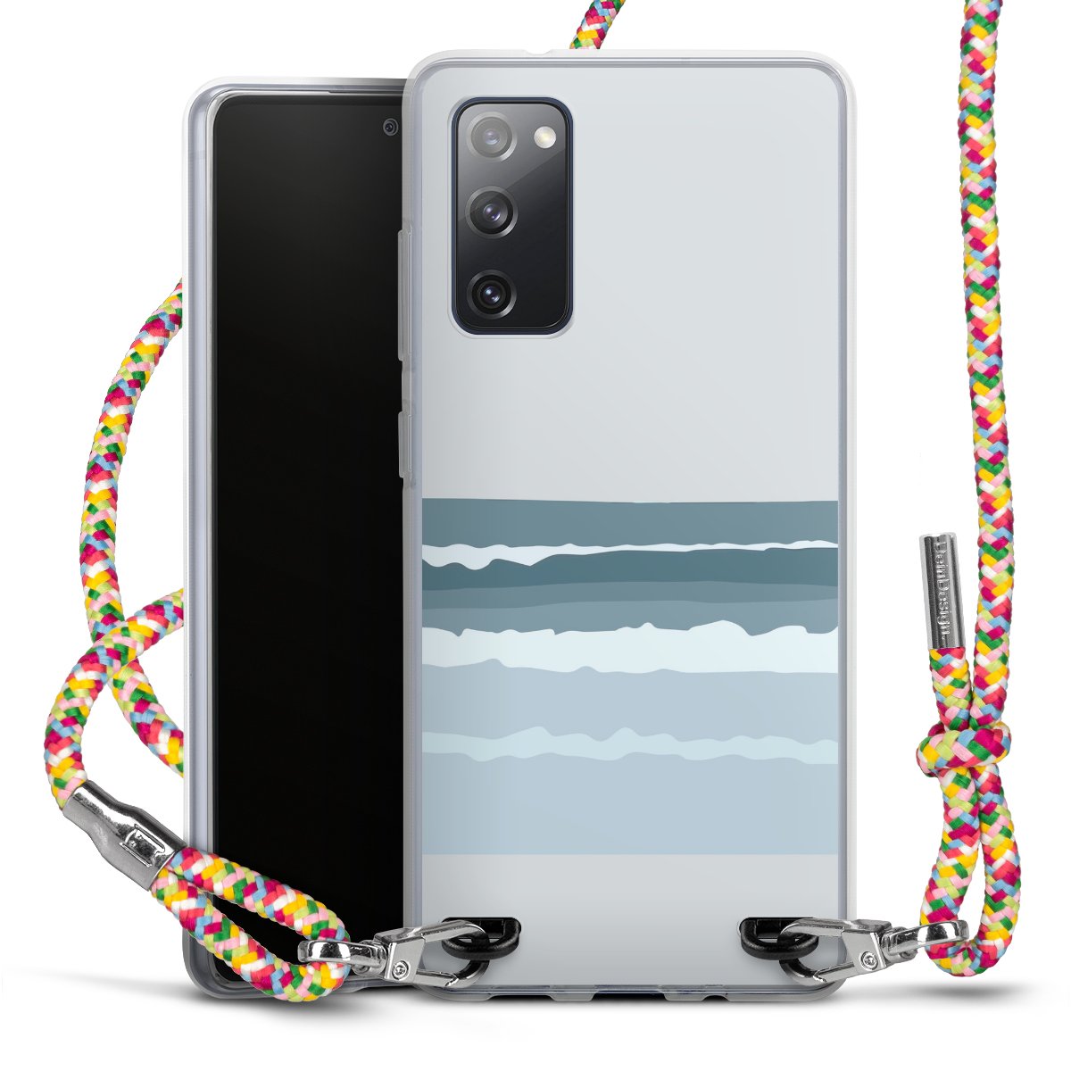 The flexible case is made from a highquality TPU material (thermoplastic Polyurethan). Thanks to its longlasting and break resistant characterisitcs, the case is flexible yet consistent in form and has a great grip and feel. The textile strap made from Polyester gives a chic yet casual accent allowing you to carry your phone like a bag or necklace - a practical gadget perfect for your next adventure. The textile strap is about 1.70 meters long and the length can easily be adjusted through the knots. Our Carry Case is available in Colourful, Mint-Camouflage, Very-Berry, Sahara-Sand and Sparkling-Neon. The ends of the textile strap are covered with metallic end caps to protect them against fraying.