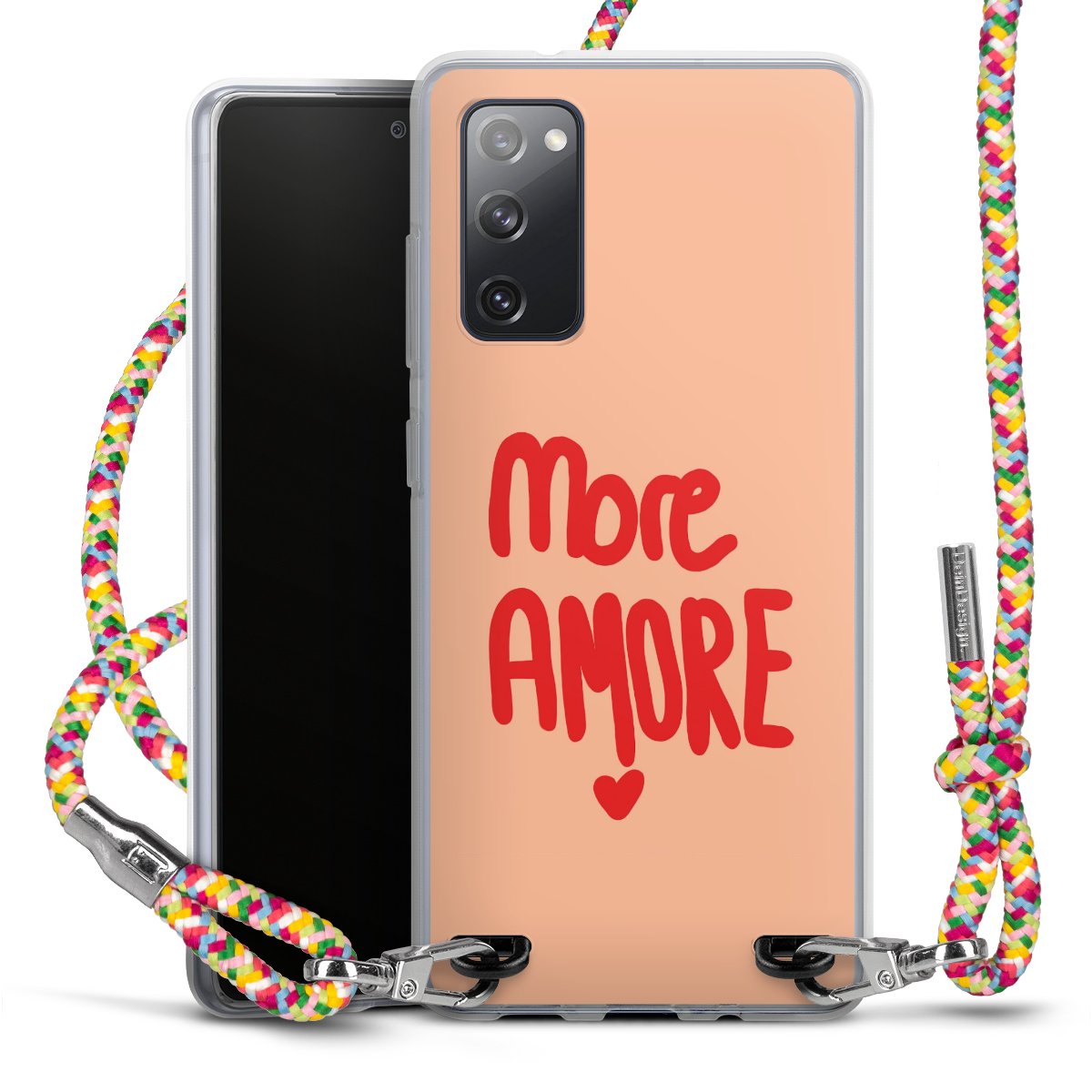 The flexible case is made from a highquality TPU material (thermoplastic Polyurethan). Thanks to its longlasting and break resistant characterisitcs, the case is flexible yet consistent in form and has a great grip and feel. The textile strap made from Polyester gives a chic yet casual accent allowing you to carry your phone like a bag or necklace - a practical gadget perfect for your next adventure. The textile strap is about 1.70 meters long and the length can easily be adjusted through the knots. Our Carry Case is available in Colourful, Mint-Camouflage, Very-Berry, Sahara-Sand and Sparkling-Neon. The ends of the textile strap are covered with metallic end caps to protect them against fraying.