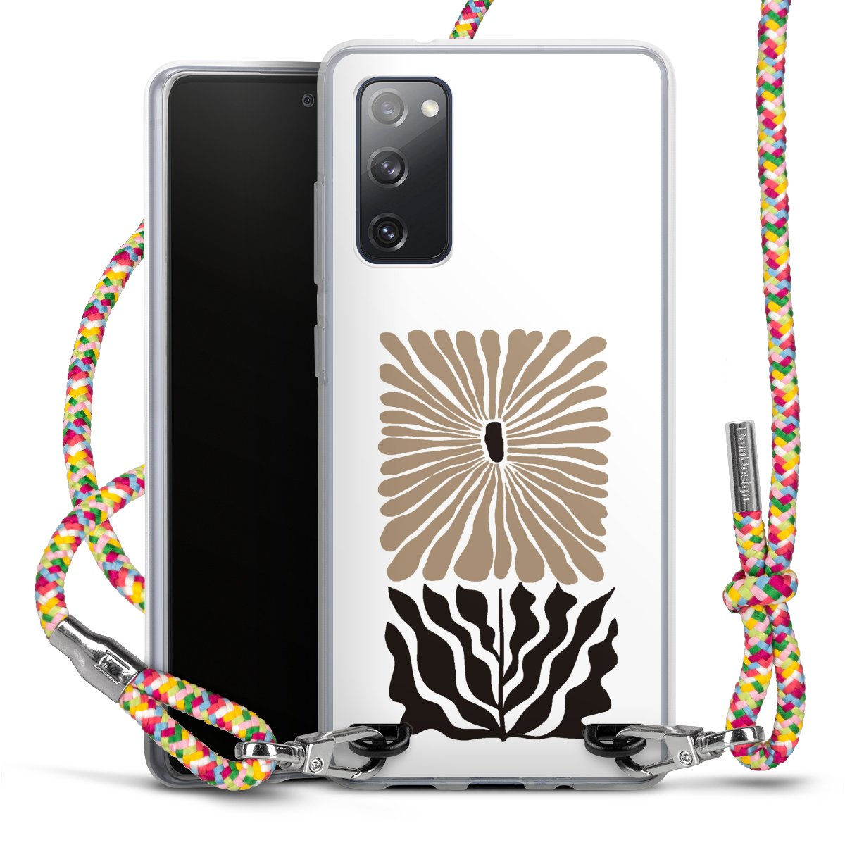 The flexible case is made from a highquality TPU material (thermoplastic Polyurethan). Thanks to its longlasting and break resistant characterisitcs, the case is flexible yet consistent in form and has a great grip and feel. The textile strap made from Polyester gives a chic yet casual accent allowing you to carry your phone like a bag or necklace - a practical gadget perfect for your next adventure. The textile strap is about 1.70 meters long and the length can easily be adjusted through the knots. Our Carry Case is available in Colourful, Mint-Camouflage, Very-Berry, Sahara-Sand and Sparkling-Neon. The ends of the textile strap are covered with metallic end caps to protect them against fraying.