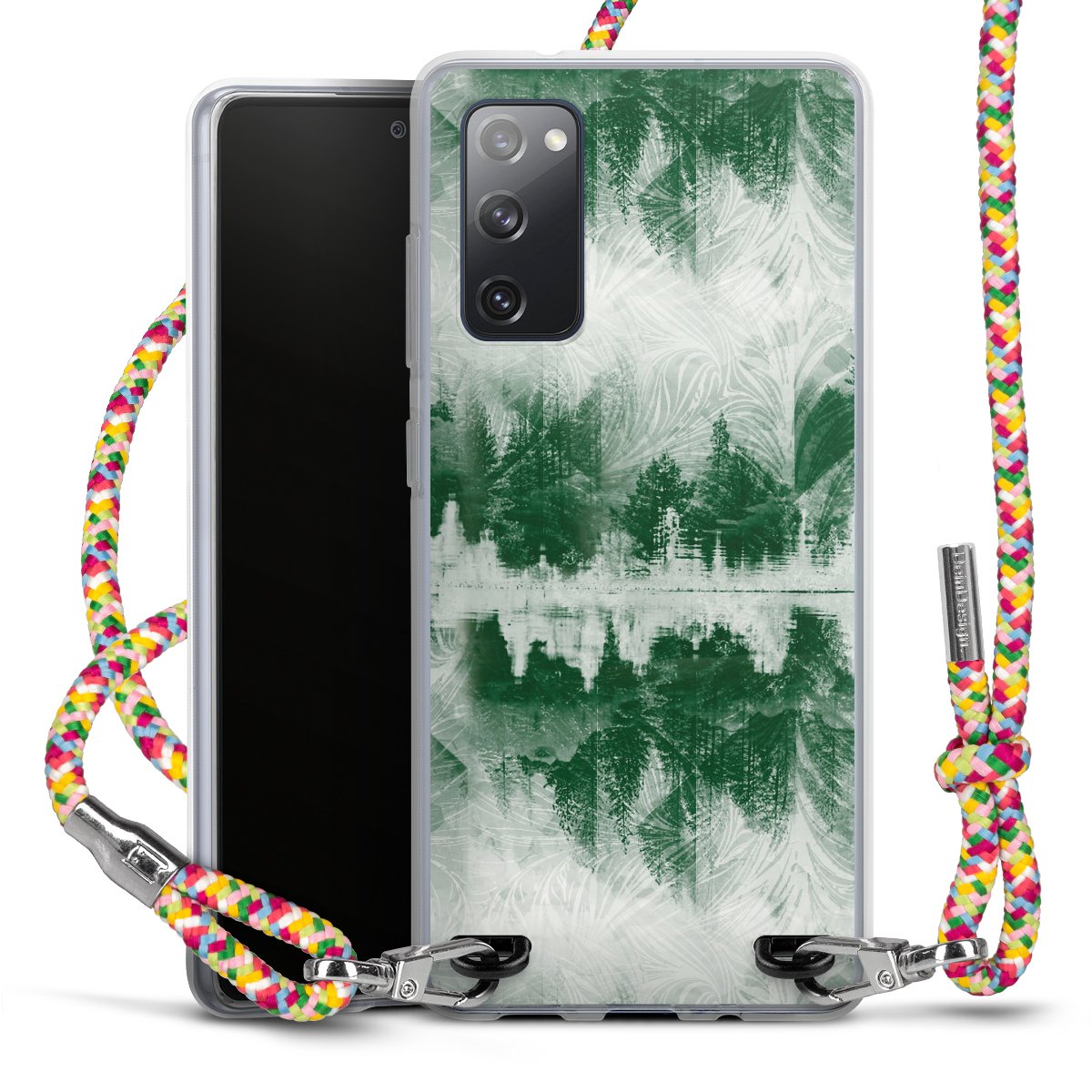 The flexible case is made from a highquality TPU material (thermoplastic Polyurethan). Thanks to its longlasting and break resistant characterisitcs, the case is flexible yet consistent in form and has a great grip and feel. The textile strap made from Polyester gives a chic yet casual accent allowing you to carry your phone like a bag or necklace - a practical gadget perfect for your next adventure. The textile strap is about 1.70 meters long and the length can easily be adjusted through the knots. Our Carry Case is available in Colourful, Mint-Camouflage, Very-Berry, Sahara-Sand and Sparkling-Neon. The ends of the textile strap are covered with metallic end caps to protect them against fraying.