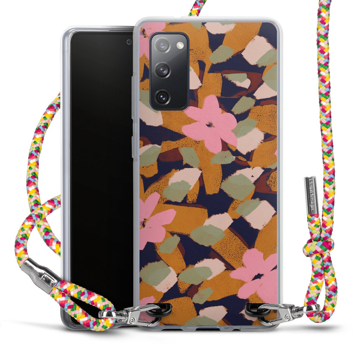 The flexible case is made from a highquality TPU material (thermoplastic Polyurethan). Thanks to its longlasting and break resistant characterisitcs, the case is flexible yet consistent in form and has a great grip and feel. The textile strap made from Polyester gives a chic yet casual accent allowing you to carry your phone like a bag or necklace - a practical gadget perfect for your next adventure. The textile strap is about 1.70 meters long and the length can easily be adjusted through the knots. Our Carry Case is available in Colourful, Mint-Camouflage, Very-Berry, Sahara-Sand and Sparkling-Neon. The ends of the textile strap are covered with metallic end caps to protect them against fraying.