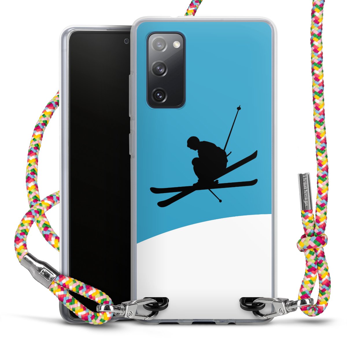The flexible case is made from a highquality TPU material (thermoplastic Polyurethan). Thanks to its longlasting and break resistant characterisitcs, the case is flexible yet consistent in form and has a great grip and feel. The textile strap made from Polyester gives a chic yet casual accent allowing you to carry your phone like a bag or necklace - a practical gadget perfect for your next adventure. The textile strap is about 1.70 meters long and the length can easily be adjusted through the knots. Our Carry Case is available in Colourful, Mint-Camouflage, Very-Berry, Sahara-Sand and Sparkling-Neon. The ends of the textile strap are covered with metallic end caps to protect them against fraying.