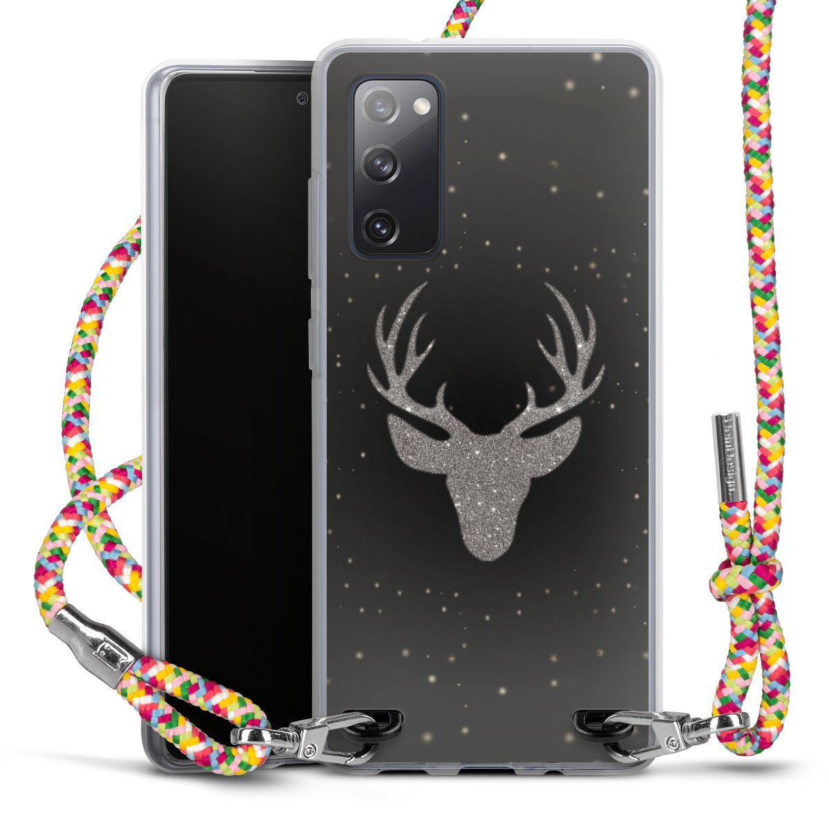 The flexible case is made from a highquality TPU material (thermoplastic Polyurethan). Thanks to its longlasting and break resistant characterisitcs, the case is flexible yet consistent in form and has a great grip and feel. The textile strap made from Polyester gives a chic yet casual accent allowing you to carry your phone like a bag or necklace - a practical gadget perfect for your next adventure. The textile strap is about 1.70 meters long and the length can easily be adjusted through the knots. Our Carry Case is available in Colourful, Mint-Camouflage, Very-Berry, Sahara-Sand and Sparkling-Neon. The ends of the textile strap are covered with metallic end caps to protect them against fraying.