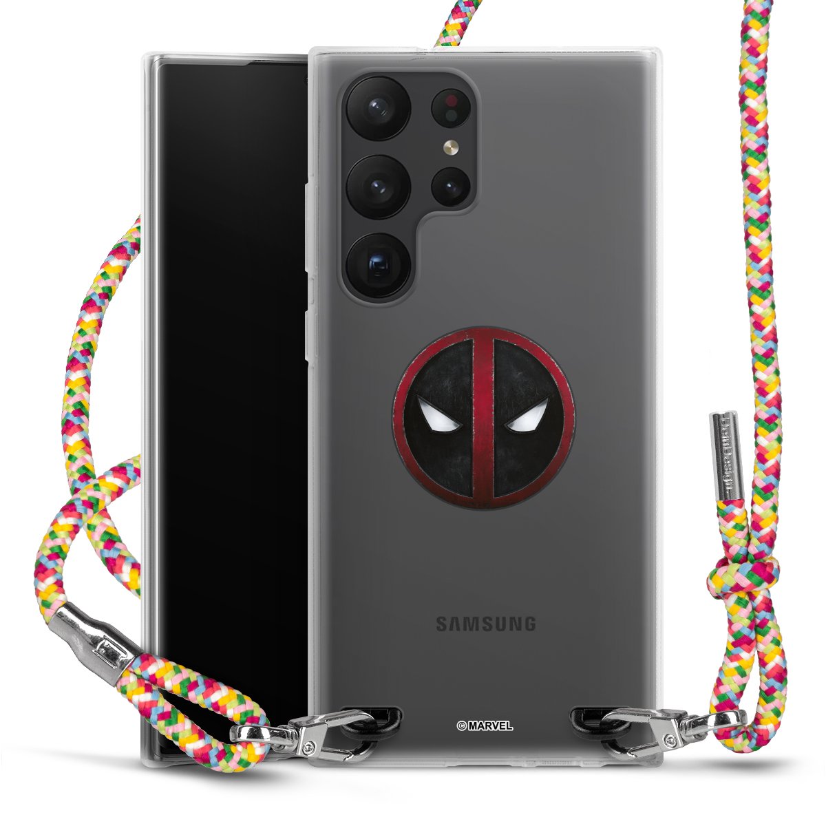 The flexible case is made from a highquality TPU material (thermoplastic Polyurethan). Thanks to its longlasting and break resistant characterisitcs, the case is flexible yet consistent in form and has a great grip and feel. The textile strap made from Polyester gives a chic yet casual accent allowing you to carry your phone like a bag or necklace - a practical gadget perfect for your next adventure. The textile strap is about 1.70 meters long and the length can easily be adjusted through the knots. Our Carry Case is available in Colourful, Mint-Camouflage, Very-Berry, Sahara-Sand and Sparkling-Neon. The ends of the textile strap are covered with metallic end caps to protect them against fraying.