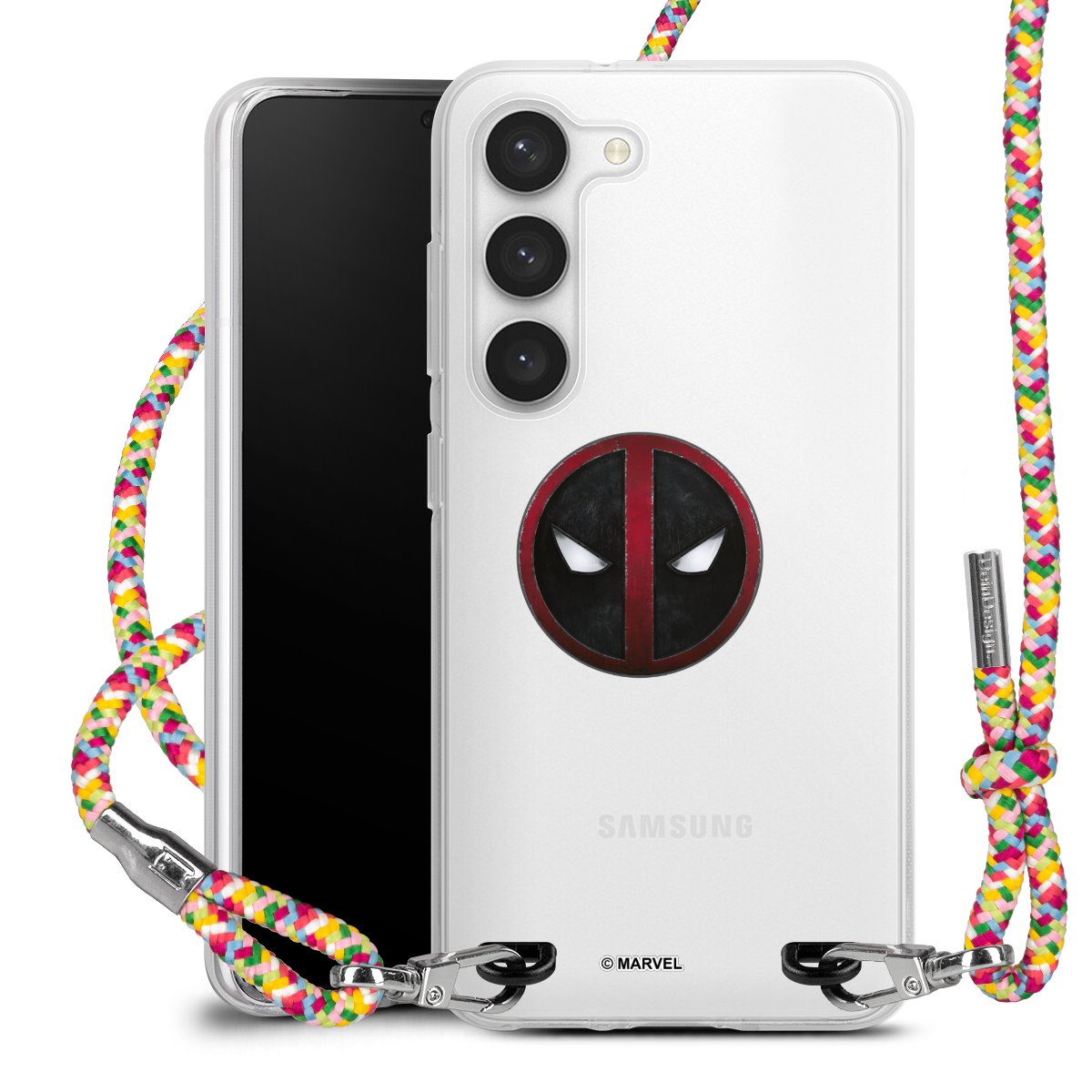 The flexible case is made from a highquality TPU material (thermoplastic Polyurethan). Thanks to its longlasting and break resistant characterisitcs, the case is flexible yet consistent in form and has a great grip and feel. The textile strap made from Polyester gives a chic yet casual accent allowing you to carry your phone like a bag or necklace - a practical gadget perfect for your next adventure. The textile strap is about 1.70 meters long and the length can easily be adjusted through the knots. Our Carry Case is available in Colourful, Mint-Camouflage, Very-Berry, Sahara-Sand and Sparkling-Neon. The ends of the textile strap are covered with metallic end caps to protect them against fraying.