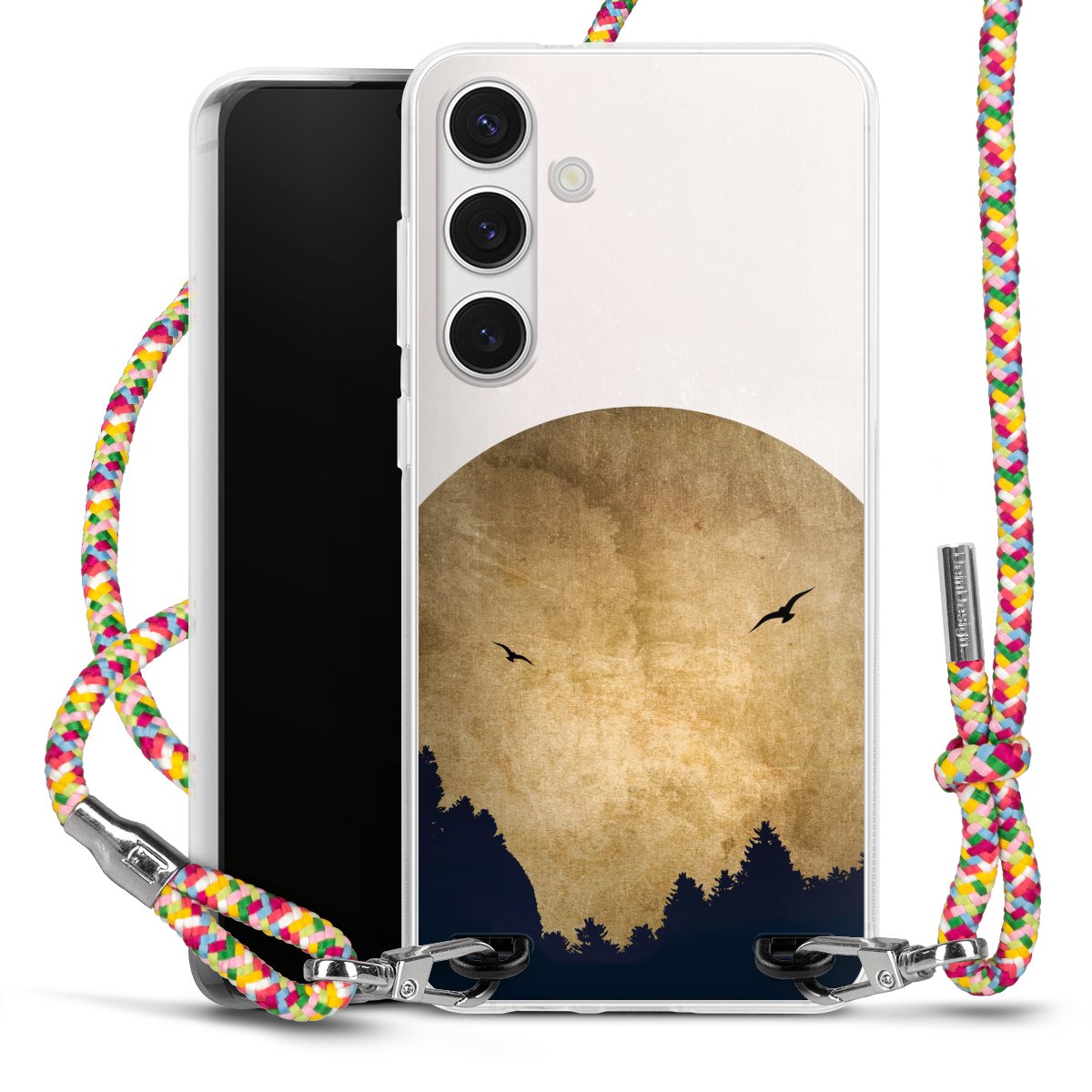 The flexible case is made from a highquality TPU material (thermoplastic Polyurethan). Thanks to its longlasting and break resistant characterisitcs, the case is flexible yet consistent in form and has a great grip and feel. The textile strap made from Polyester gives a chic yet casual accent allowing you to carry your phone like a bag or necklace - a practical gadget perfect for your next adventure. The textile strap is about 1.70 meters long and the length can easily be adjusted through the knots. Our Carry Case is available in Colourful, Mint-Camouflage, Very-Berry, Sahara-Sand and Sparkling-Neon. The ends of the textile strap are covered with metallic end caps to protect them against fraying.