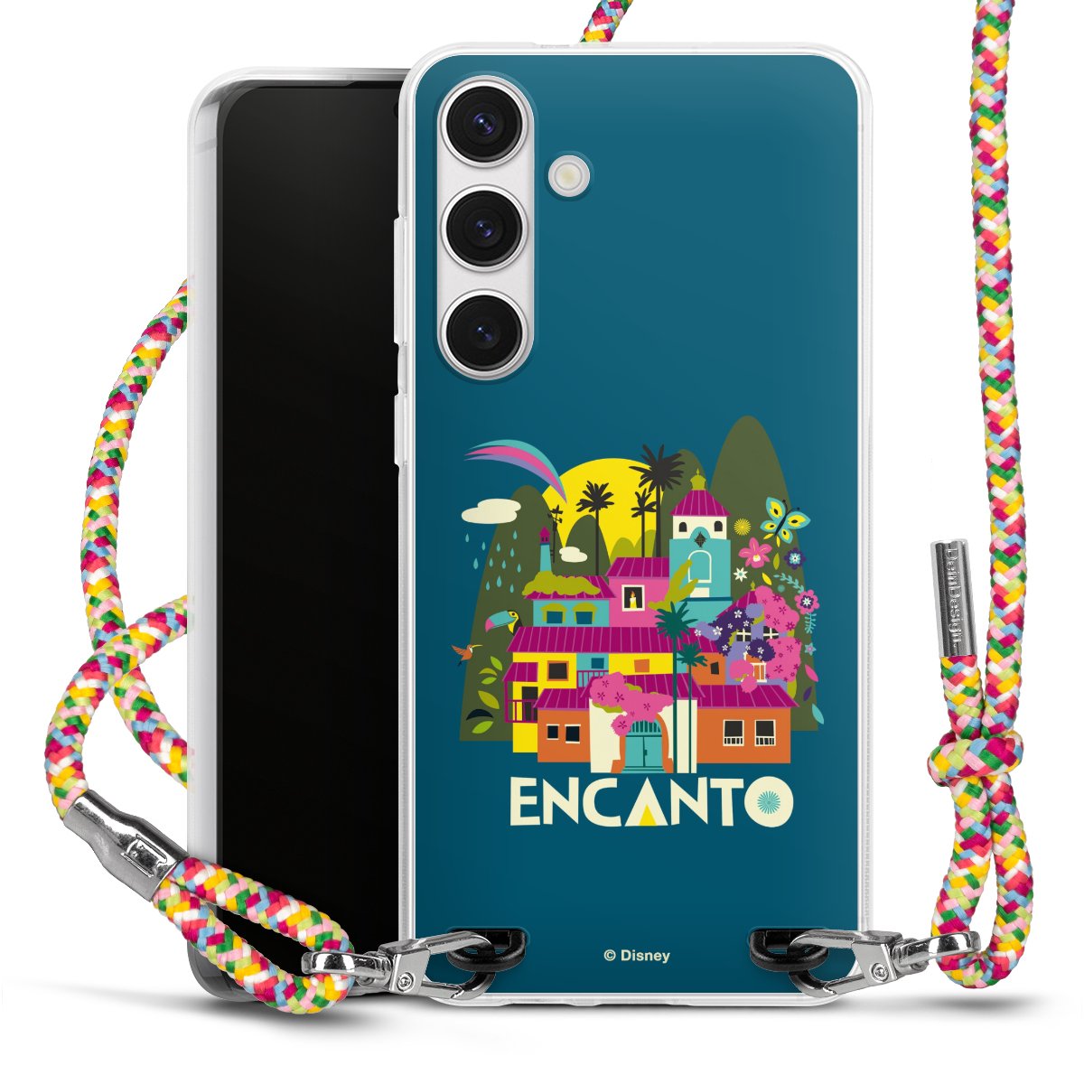 The flexible case is made from a highquality TPU material (thermoplastic Polyurethan). Thanks to its longlasting and break resistant characterisitcs, the case is flexible yet consistent in form and has a great grip and feel. The textile strap made from Polyester gives a chic yet casual accent allowing you to carry your phone like a bag or necklace - a practical gadget perfect for your next adventure. The textile strap is about 1.70 meters long and the length can easily be adjusted through the knots. Our Carry Case is available in Colourful, Mint-Camouflage, Very-Berry, Sahara-Sand and Sparkling-Neon. The ends of the textile strap are covered with metallic end caps to protect them against fraying.