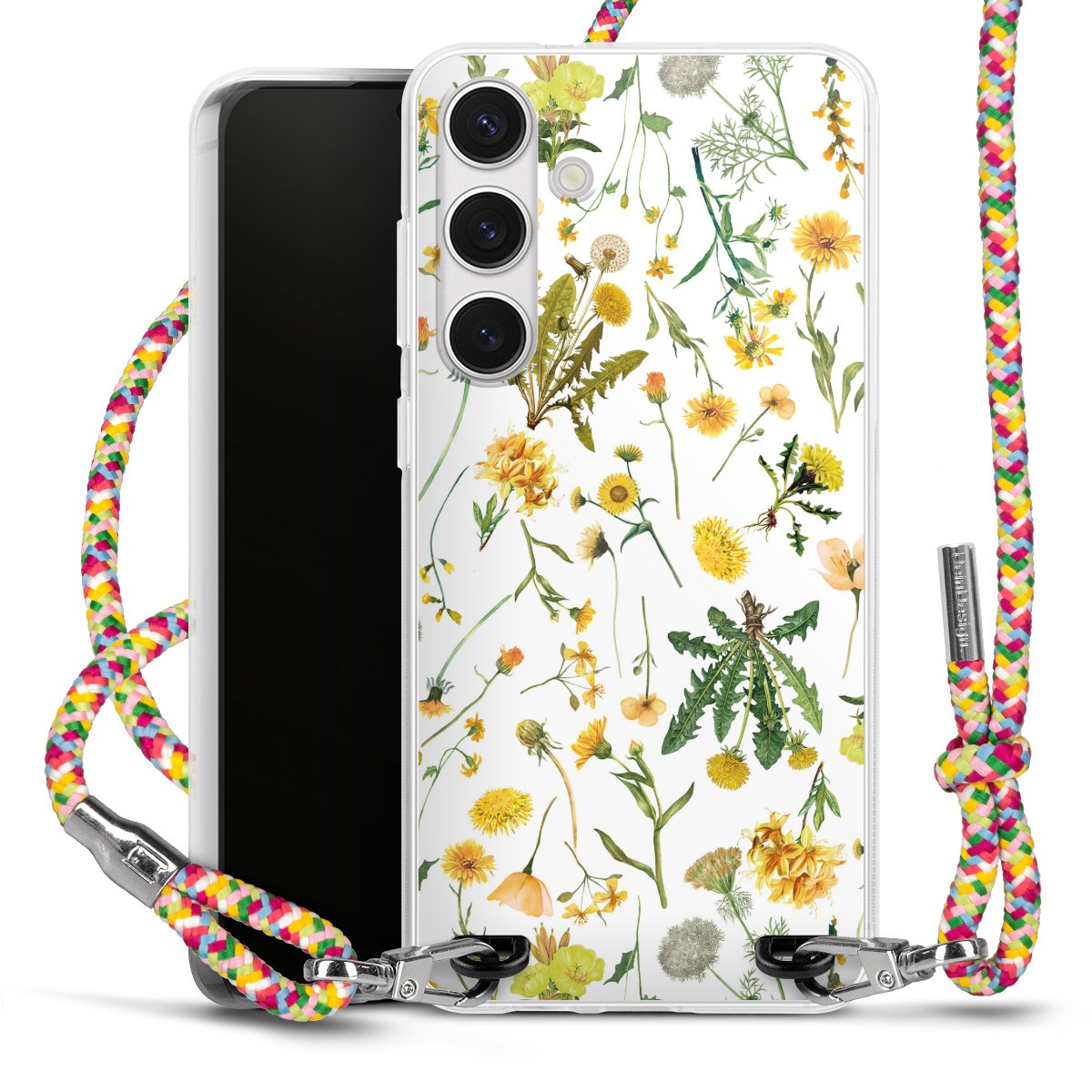 The flexible case is made from a highquality TPU material (thermoplastic Polyurethan). Thanks to its longlasting and break resistant characterisitcs, the case is flexible yet consistent in form and has a great grip and feel. The textile strap made from Polyester gives a chic yet casual accent allowing you to carry your phone like a bag or necklace - a practical gadget perfect for your next adventure. The textile strap is about 1.70 meters long and the length can easily be adjusted through the knots. Our Carry Case is available in Colourful, Mint-Camouflage, Very-Berry, Sahara-Sand and Sparkling-Neon. The ends of the textile strap are covered with metallic end caps to protect them against fraying.