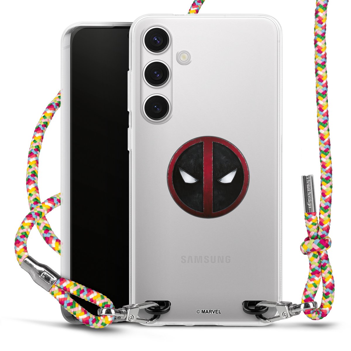 The flexible case is made from a highquality TPU material (thermoplastic Polyurethan). Thanks to its longlasting and break resistant characterisitcs, the case is flexible yet consistent in form and has a great grip and feel. The textile strap made from Polyester gives a chic yet casual accent allowing you to carry your phone like a bag or necklace - a practical gadget perfect for your next adventure. The textile strap is about 1.70 meters long and the length can easily be adjusted through the knots. Our Carry Case is available in Colourful, Mint-Camouflage, Very-Berry, Sahara-Sand and Sparkling-Neon. The ends of the textile strap are covered with metallic end caps to protect them against fraying.