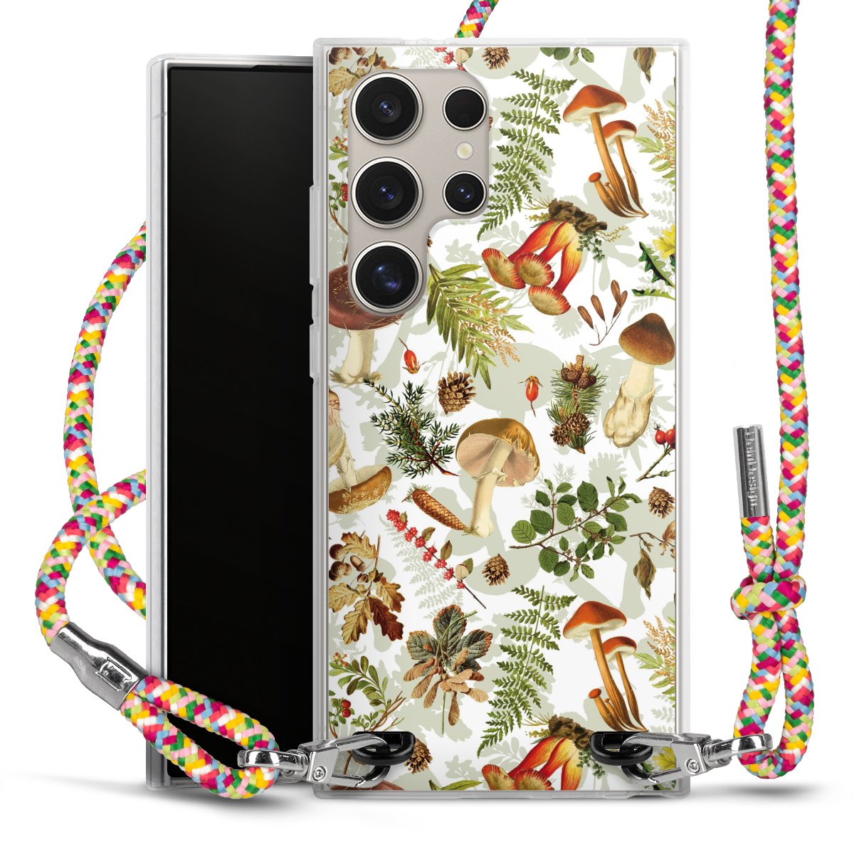The flexible case is made from a highquality TPU material (thermoplastic Polyurethan). Thanks to its longlasting and break resistant characterisitcs, the case is flexible yet consistent in form and has a great grip and feel. The textile strap made from Polyester gives a chic yet casual accent allowing you to carry your phone like a bag or necklace - a practical gadget perfect for your next adventure. The textile strap is about 1.70 meters long and the length can easily be adjusted through the knots. Our Carry Case is available in Colourful, Mint-Camouflage, Very-Berry, Sahara-Sand and Sparkling-Neon. The ends of the textile strap are covered with metallic end caps to protect them against fraying.