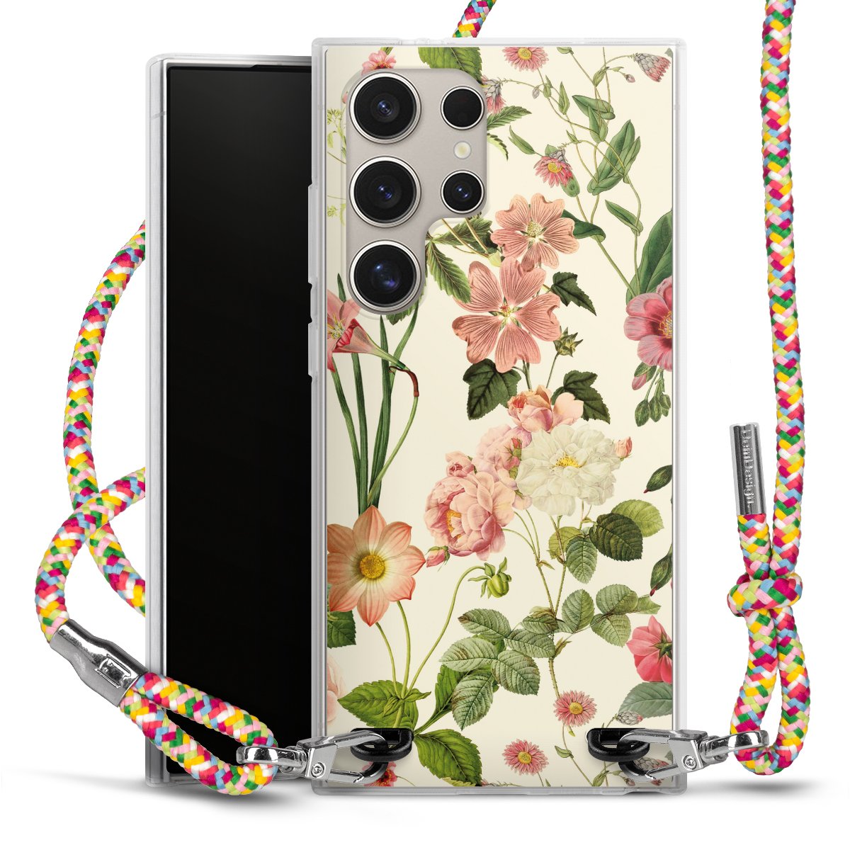 The flexible case is made from a highquality TPU material (thermoplastic Polyurethan). Thanks to its longlasting and break resistant characterisitcs, the case is flexible yet consistent in form and has a great grip and feel. The textile strap made from Polyester gives a chic yet casual accent allowing you to carry your phone like a bag or necklace - a practical gadget perfect for your next adventure. The textile strap is about 1.70 meters long and the length can easily be adjusted through the knots. Our Carry Case is available in Colourful, Mint-Camouflage, Very-Berry, Sahara-Sand and Sparkling-Neon. The ends of the textile strap are covered with metallic end caps to protect them against fraying.