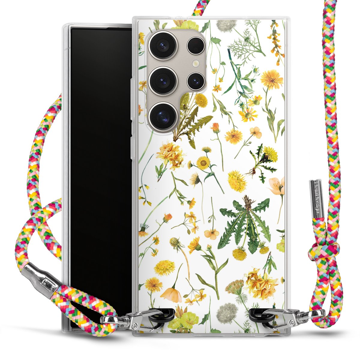 The flexible case is made from a highquality TPU material (thermoplastic Polyurethan). Thanks to its longlasting and break resistant characterisitcs, the case is flexible yet consistent in form and has a great grip and feel. The textile strap made from Polyester gives a chic yet casual accent allowing you to carry your phone like a bag or necklace - a practical gadget perfect for your next adventure. The textile strap is about 1.70 meters long and the length can easily be adjusted through the knots. Our Carry Case is available in Colourful, Mint-Camouflage, Very-Berry, Sahara-Sand and Sparkling-Neon. The ends of the textile strap are covered with metallic end caps to protect them against fraying.