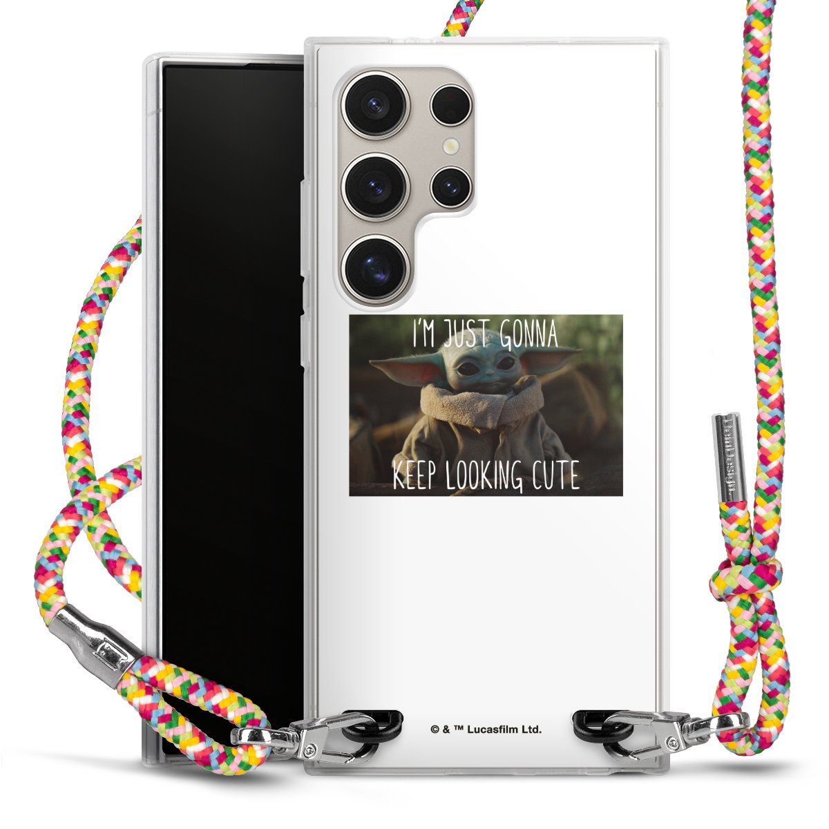 The flexible case is made from a highquality TPU material (thermoplastic Polyurethan). Thanks to its longlasting and break resistant characterisitcs, the case is flexible yet consistent in form and has a great grip and feel. The textile strap made from Polyester gives a chic yet casual accent allowing you to carry your phone like a bag or necklace - a practical gadget perfect for your next adventure. The textile strap is about 1.70 meters long and the length can easily be adjusted through the knots. Our Carry Case is available in Colourful, Mint-Camouflage, Very-Berry, Sahara-Sand and Sparkling-Neon. The ends of the textile strap are covered with metallic end caps to protect them against fraying.