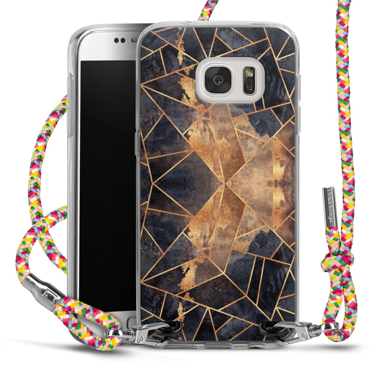 The flexible case is made from a highquality TPU material (thermoplastic Polyurethan). Thanks to its longlasting and break resistant characterisitcs, the case is flexible yet consistent in form and has a great grip and feel. The textile strap made from Polyester gives a chic yet casual accent allowing you to carry your phone like a bag or necklace - a practical gadget perfect for your next adventure. The textile strap is about 1.70 meters long and the length can easily be adjusted through the knots. Our Carry Case is available in Colourful, Mint-Camouflage, Very-Berry, Sahara-Sand and Sparkling-Neon. The ends of the textile strap are covered with metallic end caps to protect them against fraying.