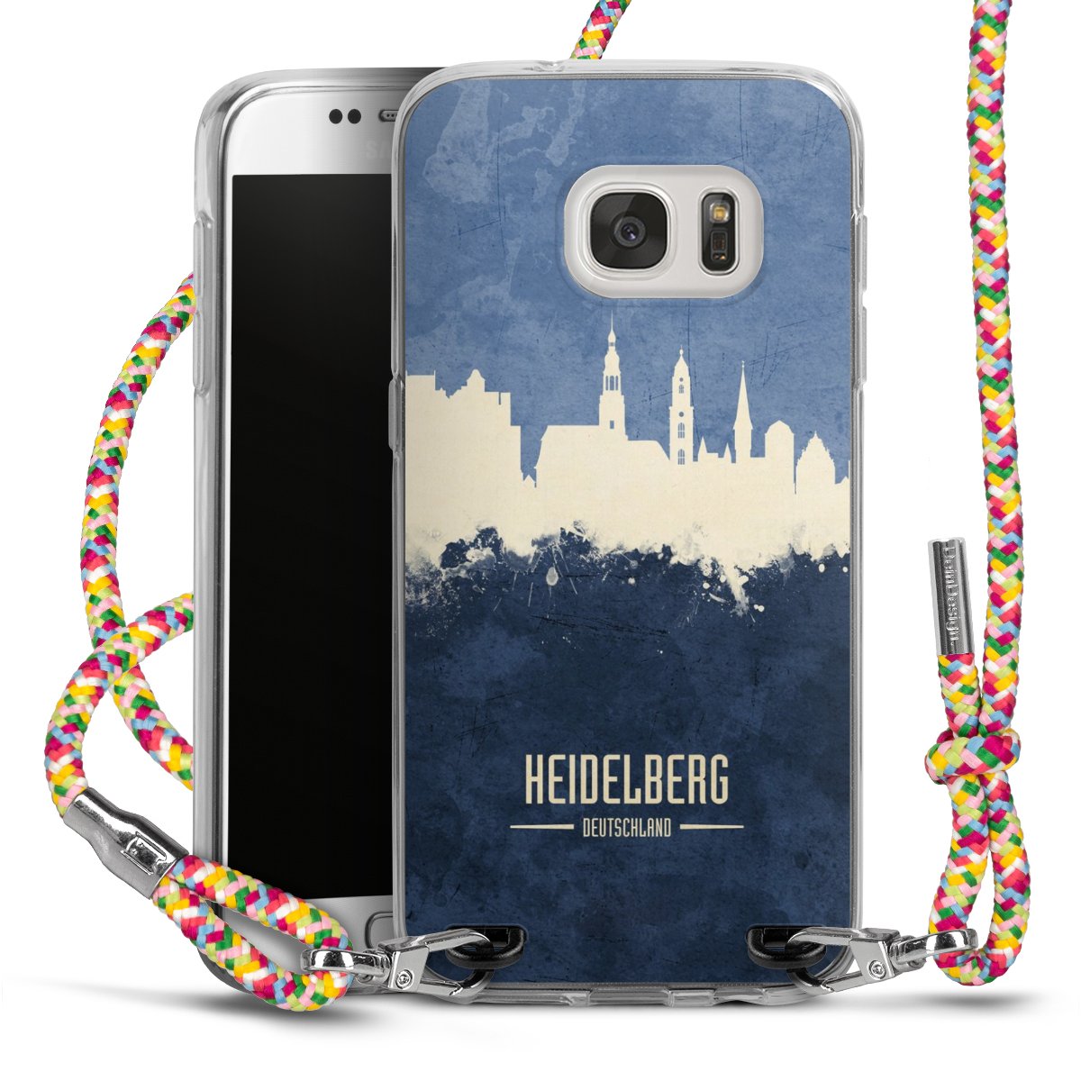 The flexible case is made from a highquality TPU material (thermoplastic Polyurethan). Thanks to its longlasting and break resistant characterisitcs, the case is flexible yet consistent in form and has a great grip and feel. The textile strap made from Polyester gives a chic yet casual accent allowing you to carry your phone like a bag or necklace - a practical gadget perfect for your next adventure. The textile strap is about 1.70 meters long and the length can easily be adjusted through the knots. Our Carry Case is available in Colourful, Mint-Camouflage, Very-Berry, Sahara-Sand and Sparkling-Neon. The ends of the textile strap are covered with metallic end caps to protect them against fraying.