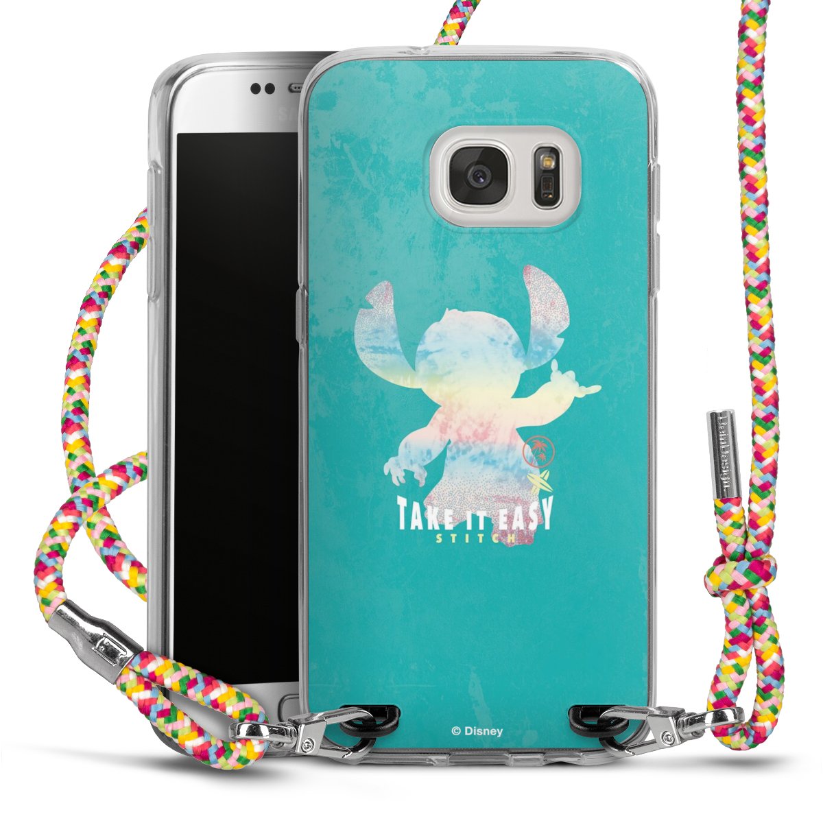 The flexible case is made from a highquality TPU material (thermoplastic Polyurethan). Thanks to its longlasting and break resistant characterisitcs, the case is flexible yet consistent in form and has a great grip and feel. The textile strap made from Polyester gives a chic yet casual accent allowing you to carry your phone like a bag or necklace - a practical gadget perfect for your next adventure. The textile strap is about 1.70 meters long and the length can easily be adjusted through the knots. Our Carry Case is available in Colourful, Mint-Camouflage, Very-Berry, Sahara-Sand and Sparkling-Neon. The ends of the textile strap are covered with metallic end caps to protect them against fraying.
