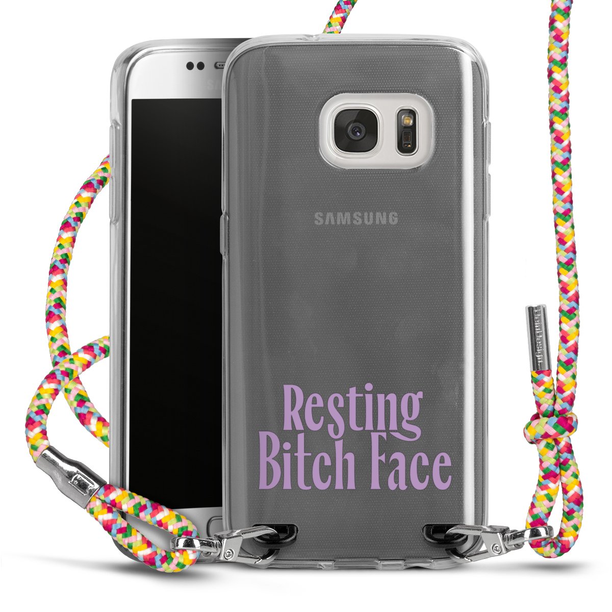 The flexible case is made from a highquality TPU material (thermoplastic Polyurethan). Thanks to its longlasting and break resistant characterisitcs, the case is flexible yet consistent in form and has a great grip and feel. The textile strap made from Polyester gives a chic yet casual accent allowing you to carry your phone like a bag or necklace - a practical gadget perfect for your next adventure. The textile strap is about 1.70 meters long and the length can easily be adjusted through the knots. Our Carry Case is available in Colourful, Mint-Camouflage, Very-Berry, Sahara-Sand and Sparkling-Neon. The ends of the textile strap are covered with metallic end caps to protect them against fraying.