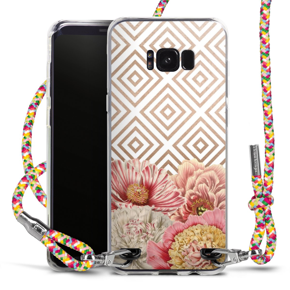 The flexible case is made from a highquality TPU material (thermoplastic Polyurethan). Thanks to its longlasting and break resistant characterisitcs, the case is flexible yet consistent in form and has a great grip and feel. The textile strap made from Polyester gives a chic yet casual accent allowing you to carry your phone like a bag or necklace - a practical gadget perfect for your next adventure. The textile strap is about 1.70 meters long and the length can easily be adjusted through the knots. Our Carry Case is available in Colourful, Mint-Camouflage, Very-Berry, Sahara-Sand and Sparkling-Neon. The ends of the textile strap are covered with metallic end caps to protect them against fraying.
