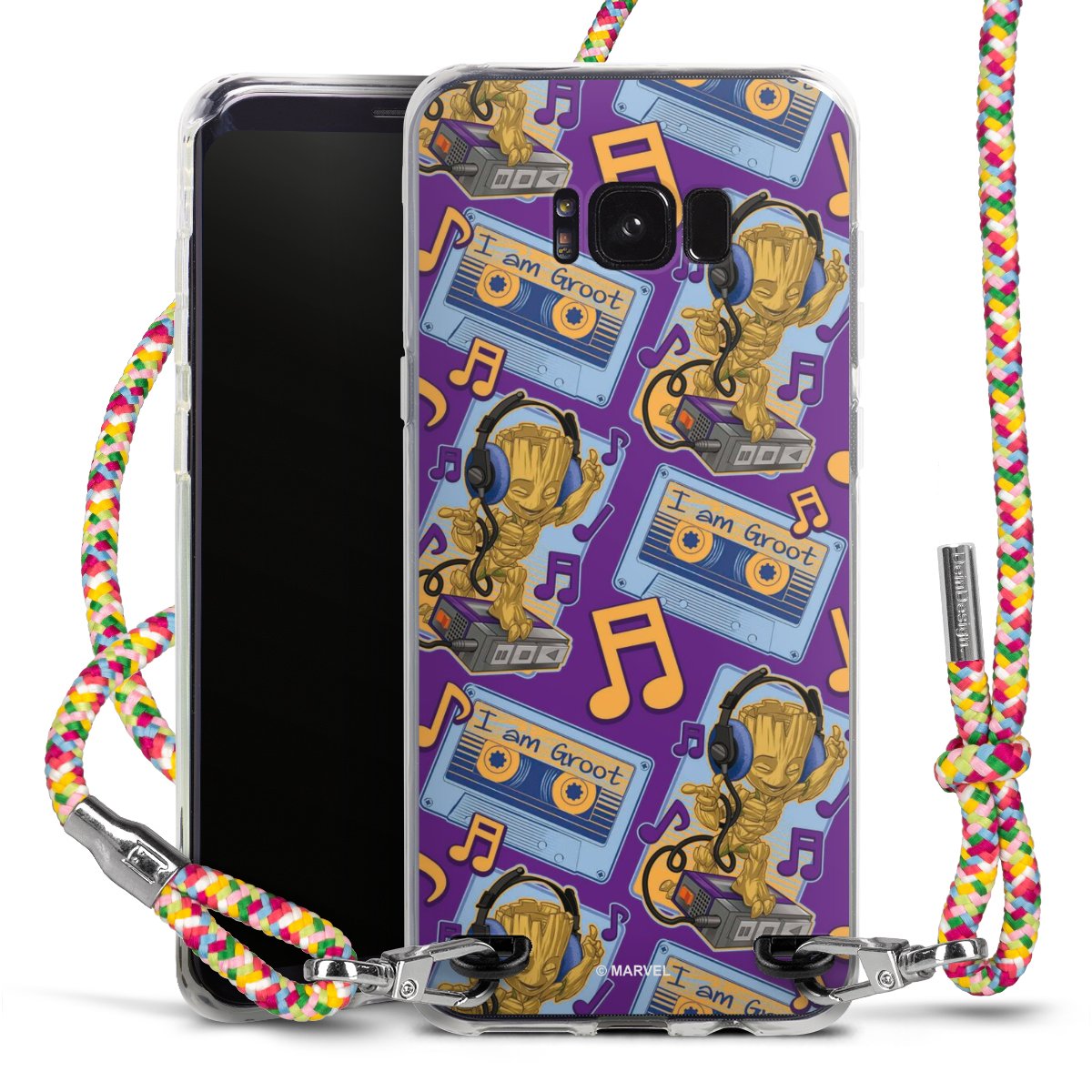The flexible case is made from a highquality TPU material (thermoplastic Polyurethan). Thanks to its longlasting and break resistant characterisitcs, the case is flexible yet consistent in form and has a great grip and feel. The textile strap made from Polyester gives a chic yet casual accent allowing you to carry your phone like a bag or necklace - a practical gadget perfect for your next adventure. The textile strap is about 1.70 meters long and the length can easily be adjusted through the knots. Our Carry Case is available in Colourful, Mint-Camouflage, Very-Berry, Sahara-Sand and Sparkling-Neon. The ends of the textile strap are covered with metallic end caps to protect them against fraying.