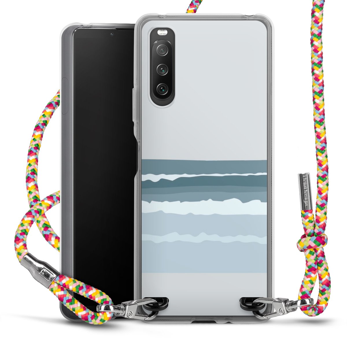 The flexible case is made from a highquality TPU material (thermoplastic Polyurethan). Thanks to its longlasting and break resistant characterisitcs, the case is flexible yet consistent in form and has a great grip and feel. The textile strap made from Polyester gives a chic yet casual accent allowing you to carry your phone like a bag or necklace - a practical gadget perfect for your next adventure. The textile strap is about 1.70 meters long and the length can easily be adjusted through the knots. Our Carry Case is available in Colourful, Mint-Camouflage, Very-Berry, Sahara-Sand and Sparkling-Neon. The ends of the textile strap are covered with metallic end caps to protect them against fraying.