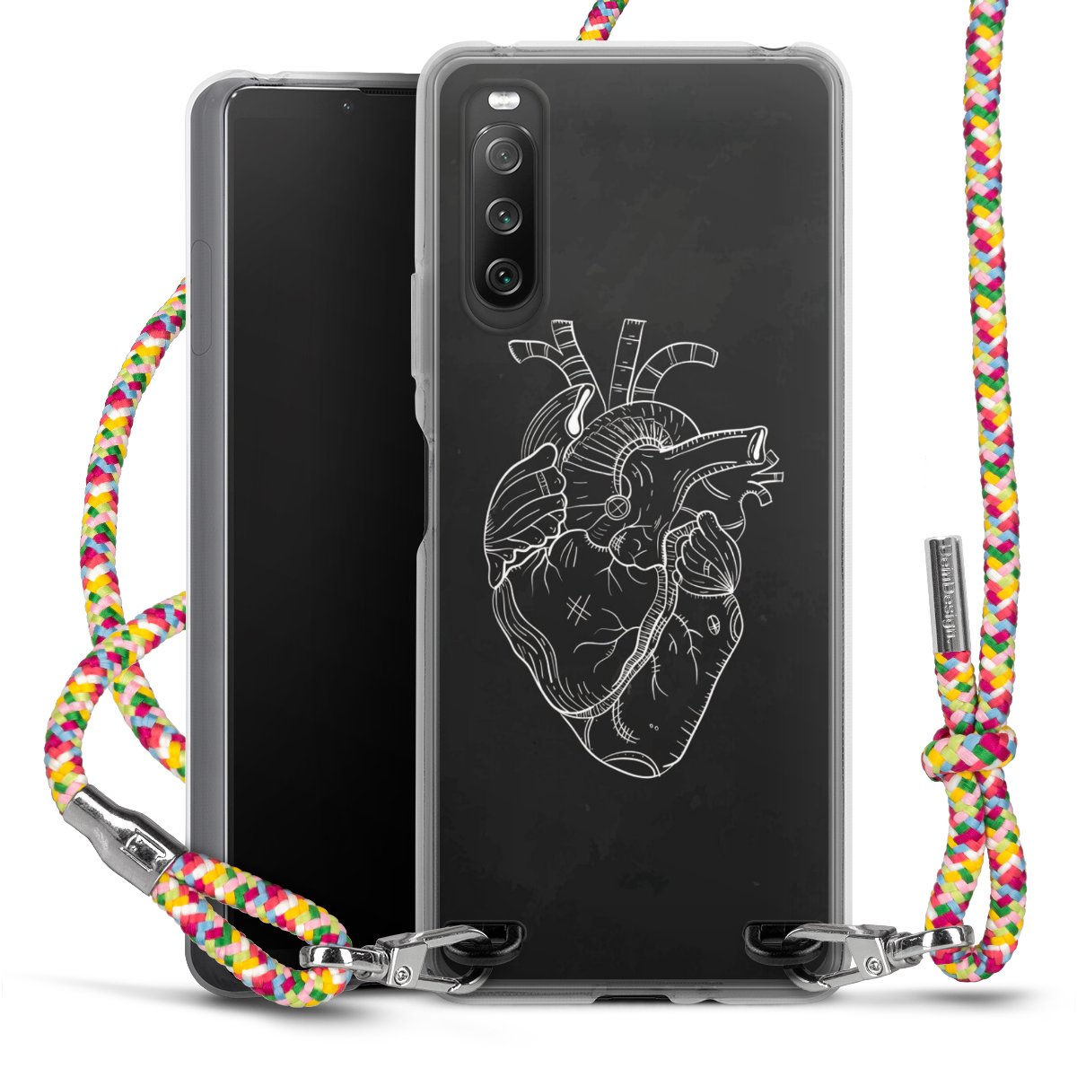 The flexible case is made from a highquality TPU material (thermoplastic Polyurethan). Thanks to its longlasting and break resistant characterisitcs, the case is flexible yet consistent in form and has a great grip and feel. The textile strap made from Polyester gives a chic yet casual accent allowing you to carry your phone like a bag or necklace - a practical gadget perfect for your next adventure. The textile strap is about 1.70 meters long and the length can easily be adjusted through the knots. Our Carry Case is available in Colourful, Mint-Camouflage, Very-Berry, Sahara-Sand and Sparkling-Neon. The ends of the textile strap are covered with metallic end caps to protect them against fraying.
