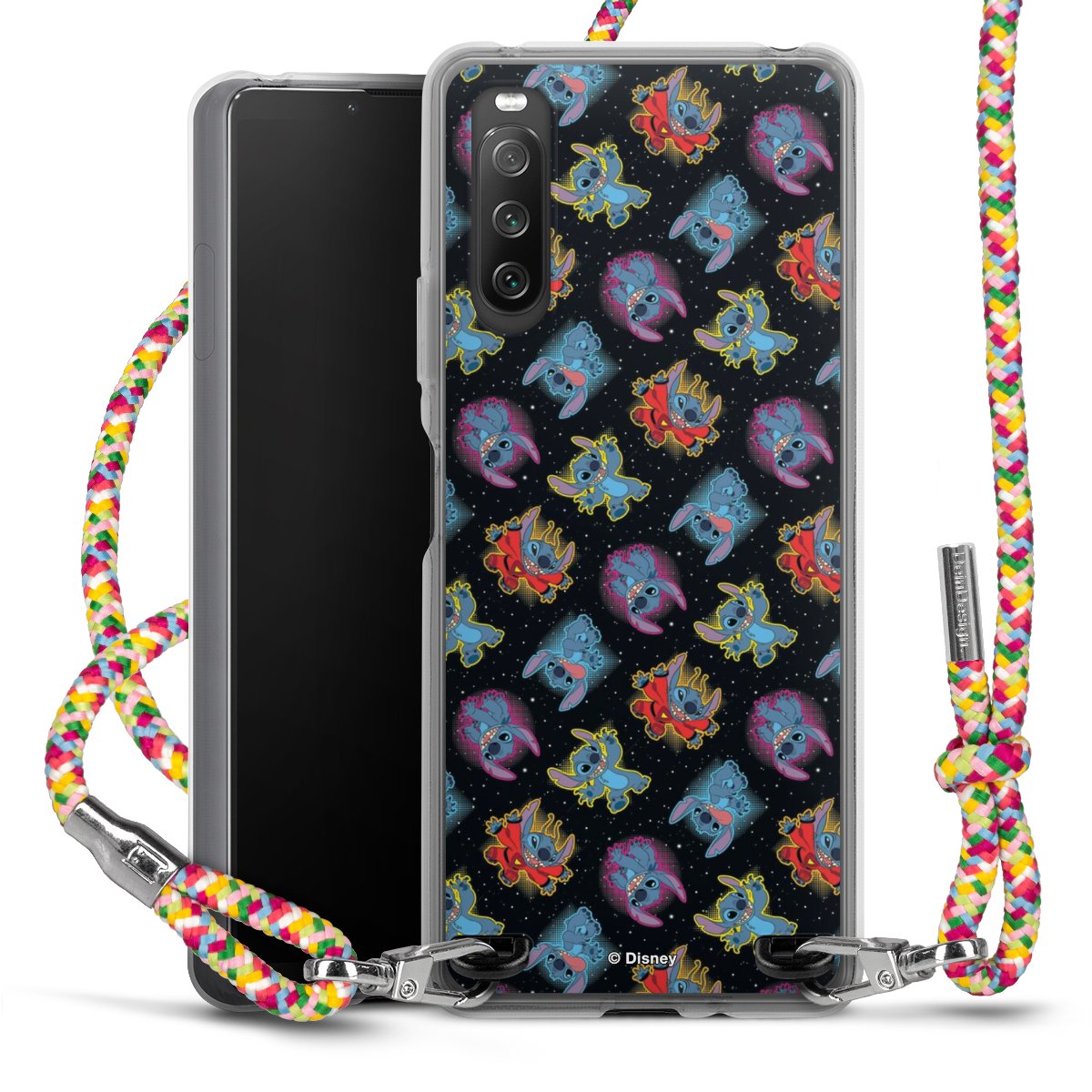 The flexible case is made from a highquality TPU material (thermoplastic Polyurethan). Thanks to its longlasting and break resistant characterisitcs, the case is flexible yet consistent in form and has a great grip and feel. The textile strap made from Polyester gives a chic yet casual accent allowing you to carry your phone like a bag or necklace - a practical gadget perfect for your next adventure. The textile strap is about 1.70 meters long and the length can easily be adjusted through the knots. Our Carry Case is available in Colourful, Mint-Camouflage, Very-Berry, Sahara-Sand and Sparkling-Neon. The ends of the textile strap are covered with metallic end caps to protect them against fraying.