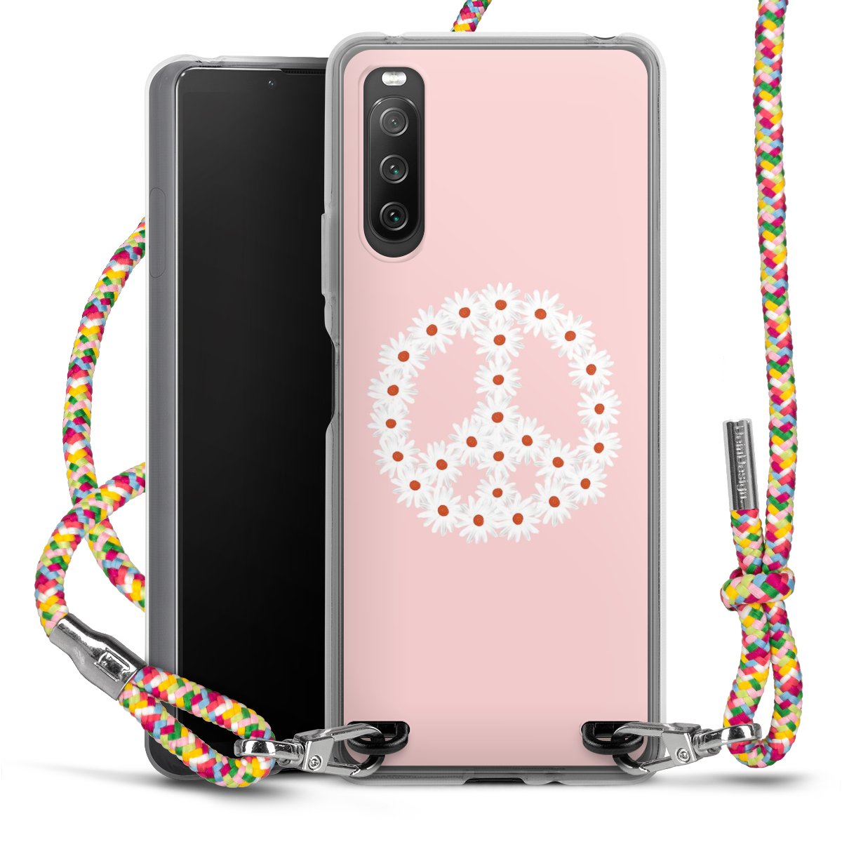 The flexible case is made from a highquality TPU material (thermoplastic Polyurethan). Thanks to its longlasting and break resistant characterisitcs, the case is flexible yet consistent in form and has a great grip and feel. The textile strap made from Polyester gives a chic yet casual accent allowing you to carry your phone like a bag or necklace - a practical gadget perfect for your next adventure. The textile strap is about 1.70 meters long and the length can easily be adjusted through the knots. Our Carry Case is available in Colourful, Mint-Camouflage, Very-Berry, Sahara-Sand and Sparkling-Neon. The ends of the textile strap are covered with metallic end caps to protect them against fraying.