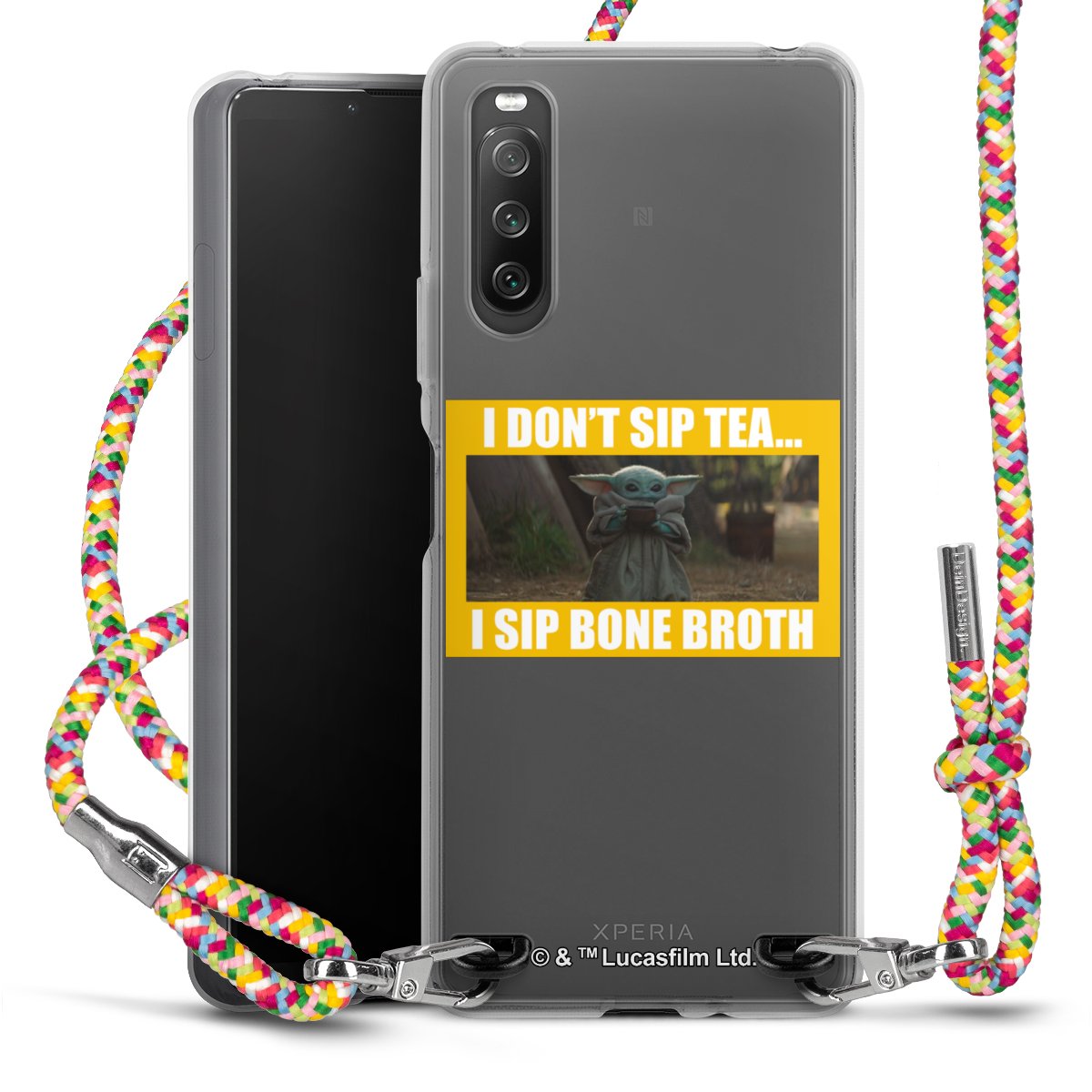 The flexible case is made from a highquality TPU material (thermoplastic Polyurethan). Thanks to its longlasting and break resistant characterisitcs, the case is flexible yet consistent in form and has a great grip and feel. The textile strap made from Polyester gives a chic yet casual accent allowing you to carry your phone like a bag or necklace - a practical gadget perfect for your next adventure. The textile strap is about 1.70 meters long and the length can easily be adjusted through the knots. Our Carry Case is available in Colourful, Mint-Camouflage, Very-Berry, Sahara-Sand and Sparkling-Neon. The ends of the textile strap are covered with metallic end caps to protect them against fraying.