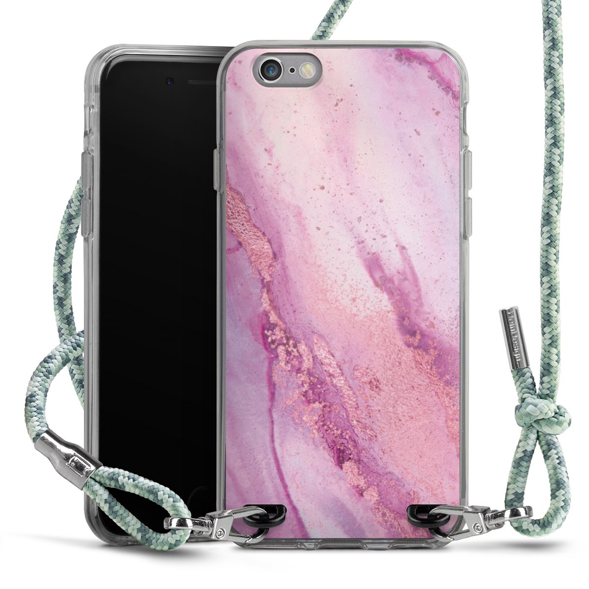 The flexible case is made from a highquality TPU material (thermoplastic Polyurethan). Thanks to its longlasting and break resistant characterisitcs, the case is flexible yet consistent in form and has a great grip and feel. The textile strap made from Polyester gives a chic yet casual accent allowing you to carry your phone like a bag or necklace - a practical gadget perfect for your next adventure. The textile strap is about 1.70 meters long and the length can easily be adjusted through the knots. Our Carry Case is available in Colourful, Mint-Camouflage, Very-Berry, Sahara-Sand and Sparkling-Neon. The ends of the textile strap are covered with metallic end caps to protect them against fraying.