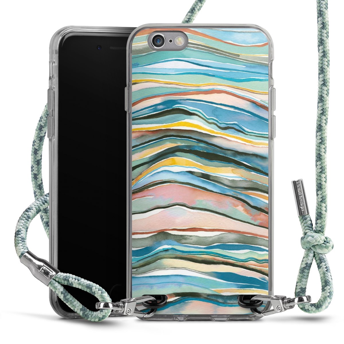 The flexible case is made from a highquality TPU material (thermoplastic Polyurethan). Thanks to its longlasting and break resistant characterisitcs, the case is flexible yet consistent in form and has a great grip and feel. The textile strap made from Polyester gives a chic yet casual accent allowing you to carry your phone like a bag or necklace - a practical gadget perfect for your next adventure. The textile strap is about 1.70 meters long and the length can easily be adjusted through the knots. Our Carry Case is available in Colourful, Mint-Camouflage, Very-Berry, Sahara-Sand and Sparkling-Neon. The ends of the textile strap are covered with metallic end caps to protect them against fraying.