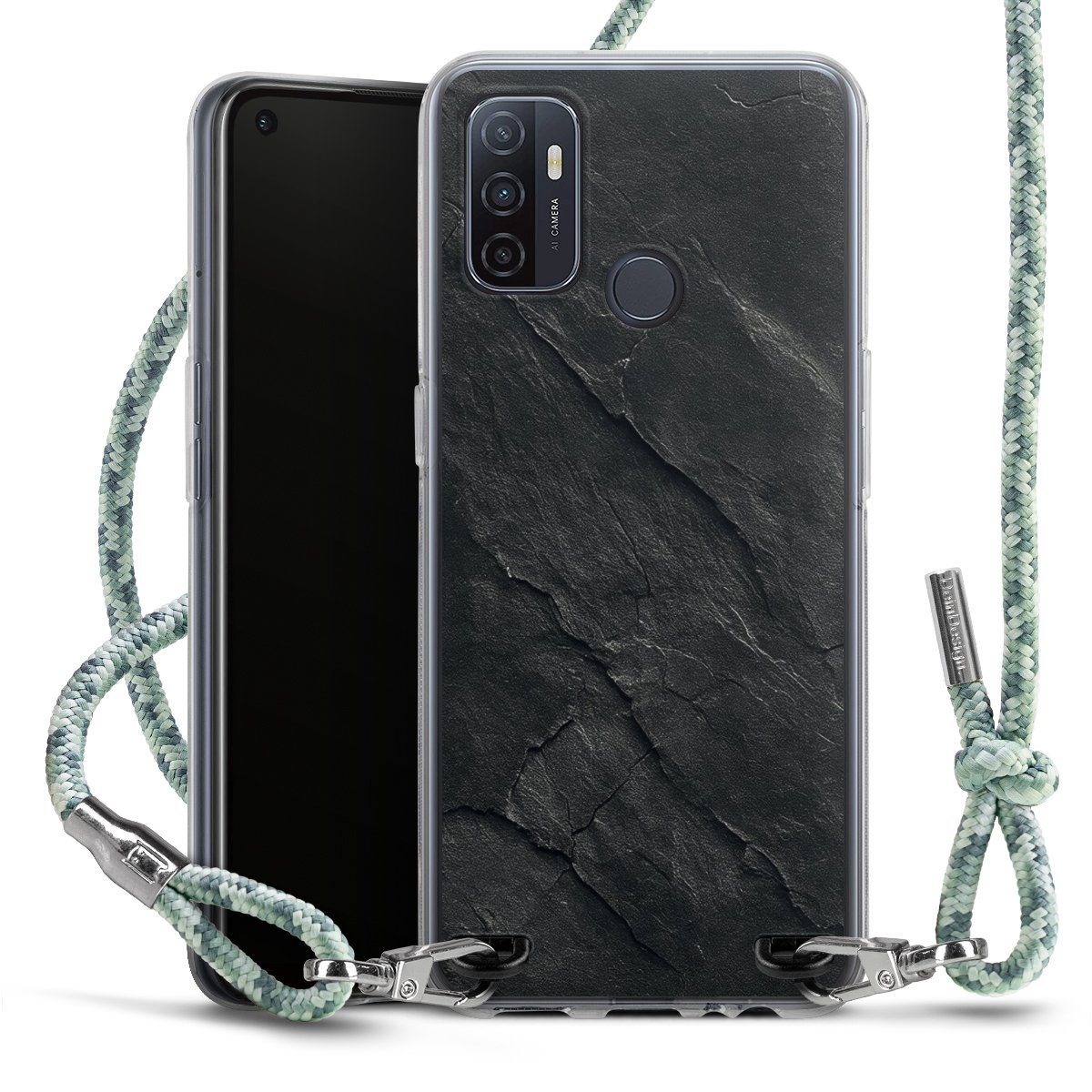 The flexible case is made from a highquality TPU material (thermoplastic Polyurethan). Thanks to its longlasting and break resistant characterisitcs, the case is flexible yet consistent in form and has a great grip and feel. The textile strap made from Polyester gives a chic yet casual accent allowing you to carry your phone like a bag or necklace - a practical gadget perfect for your next adventure. The textile strap is about 1.70 meters long and the length can easily be adjusted through the knots. Our Carry Case is available in Colourful, Mint-Camouflage, Very-Berry, Sahara-Sand and Sparkling-Neon. The ends of the textile strap are covered with metallic end caps to protect them against fraying.