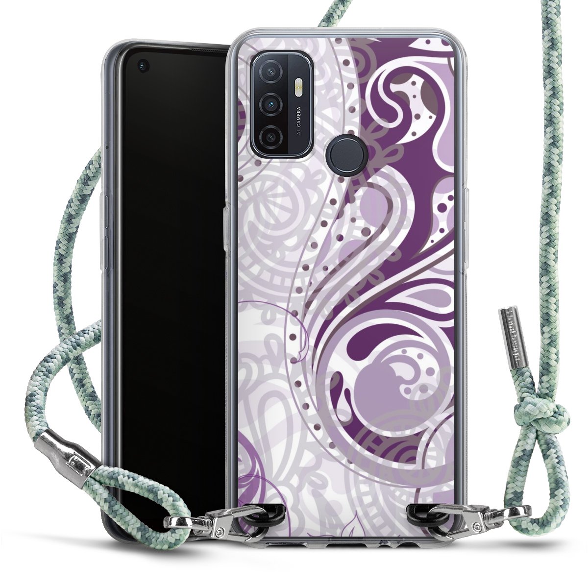 The flexible case is made from a highquality TPU material (thermoplastic Polyurethan). Thanks to its longlasting and break resistant characterisitcs, the case is flexible yet consistent in form and has a great grip and feel. The textile strap made from Polyester gives a chic yet casual accent allowing you to carry your phone like a bag or necklace - a practical gadget perfect for your next adventure. The textile strap is about 1.70 meters long and the length can easily be adjusted through the knots. Our Carry Case is available in Colourful, Mint-Camouflage, Very-Berry, Sahara-Sand and Sparkling-Neon. The ends of the textile strap are covered with metallic end caps to protect them against fraying.