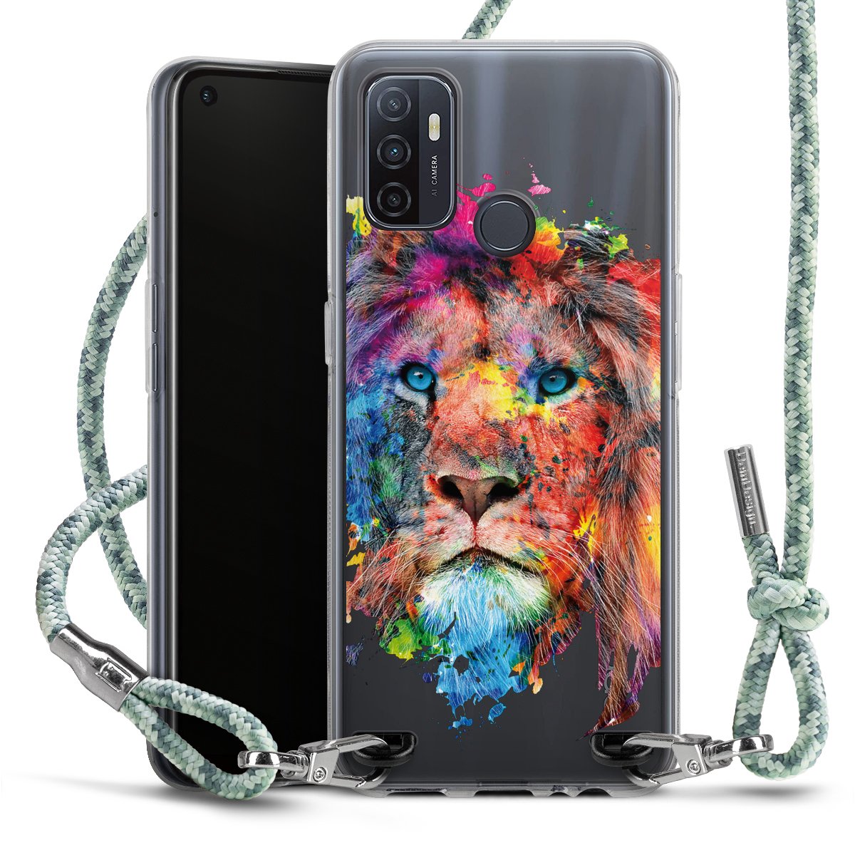 The flexible case is made from a highquality TPU material (thermoplastic Polyurethan). Thanks to its longlasting and break resistant characterisitcs, the case is flexible yet consistent in form and has a great grip and feel. The textile strap made from Polyester gives a chic yet casual accent allowing you to carry your phone like a bag or necklace - a practical gadget perfect for your next adventure. The textile strap is about 1.70 meters long and the length can easily be adjusted through the knots. Our Carry Case is available in Colourful, Mint-Camouflage, Very-Berry, Sahara-Sand and Sparkling-Neon. The ends of the textile strap are covered with metallic end caps to protect them against fraying.