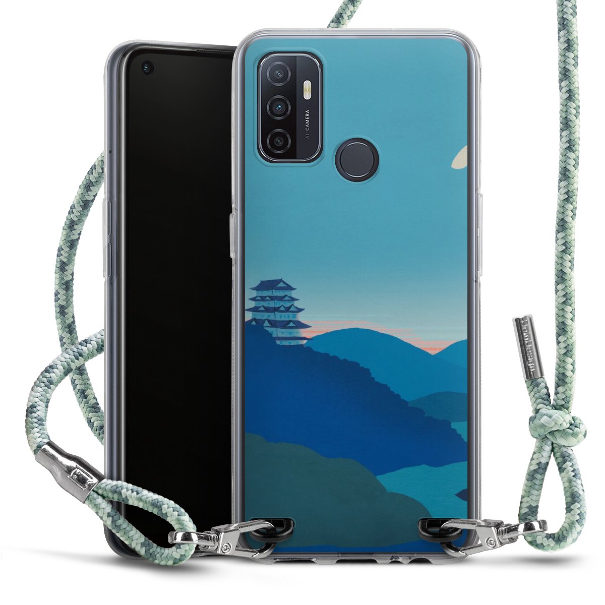 The flexible case is made from a highquality TPU material (thermoplastic Polyurethan). Thanks to its longlasting and break resistant characterisitcs, the case is flexible yet consistent in form and has a great grip and feel. The textile strap made from Polyester gives a chic yet casual accent allowing you to carry your phone like a bag or necklace - a practical gadget perfect for your next adventure. The textile strap is about 1.70 meters long and the length can easily be adjusted through the knots. Our Carry Case is available in Colourful, Mint-Camouflage, Very-Berry, Sahara-Sand and Sparkling-Neon. The ends of the textile strap are covered with metallic end caps to protect them against fraying.