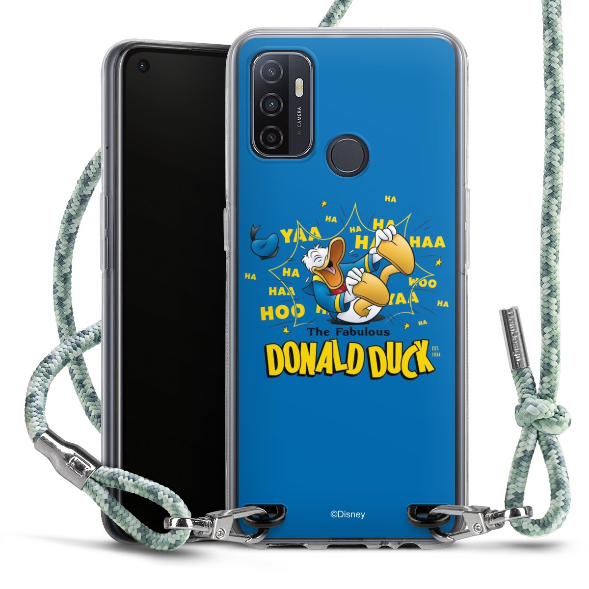 The flexible case is made from a highquality TPU material (thermoplastic Polyurethan). Thanks to its longlasting and break resistant characterisitcs, the case is flexible yet consistent in form and has a great grip and feel. The textile strap made from Polyester gives a chic yet casual accent allowing you to carry your phone like a bag or necklace - a practical gadget perfect for your next adventure. The textile strap is about 1.70 meters long and the length can easily be adjusted through the knots. Our Carry Case is available in Colourful, Mint-Camouflage, Very-Berry, Sahara-Sand and Sparkling-Neon. The ends of the textile strap are covered with metallic end caps to protect them against fraying.
